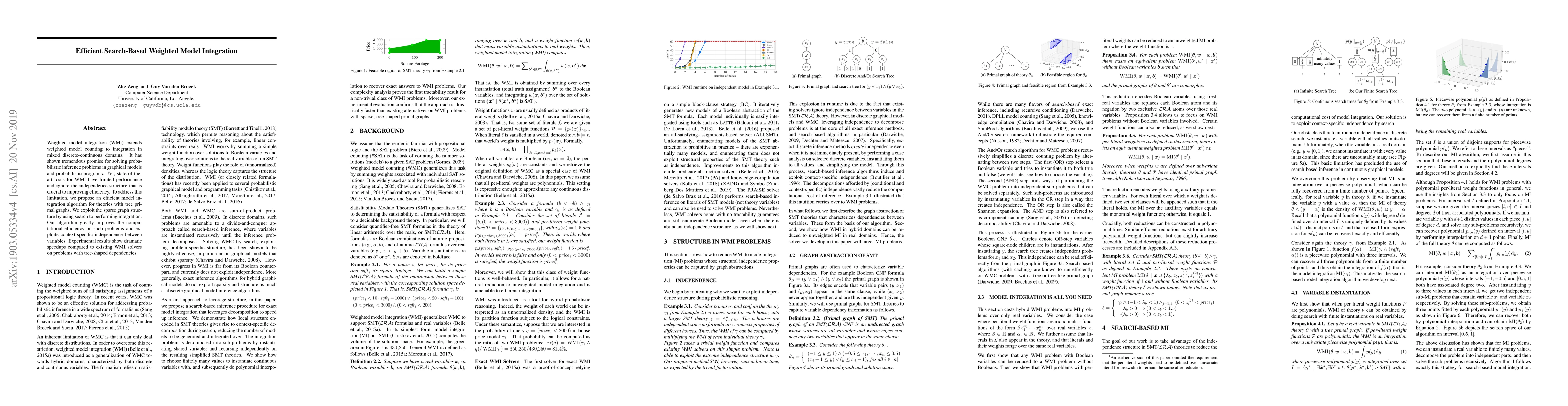 This paper proposes an efficient search-based algorithm for weighted model integration (WMI) that leverages tree-shaped primal graphs to improve computational efficiency. The method exploits the independence structure of the graph, achieving significant speedups over existing WMI solvers.