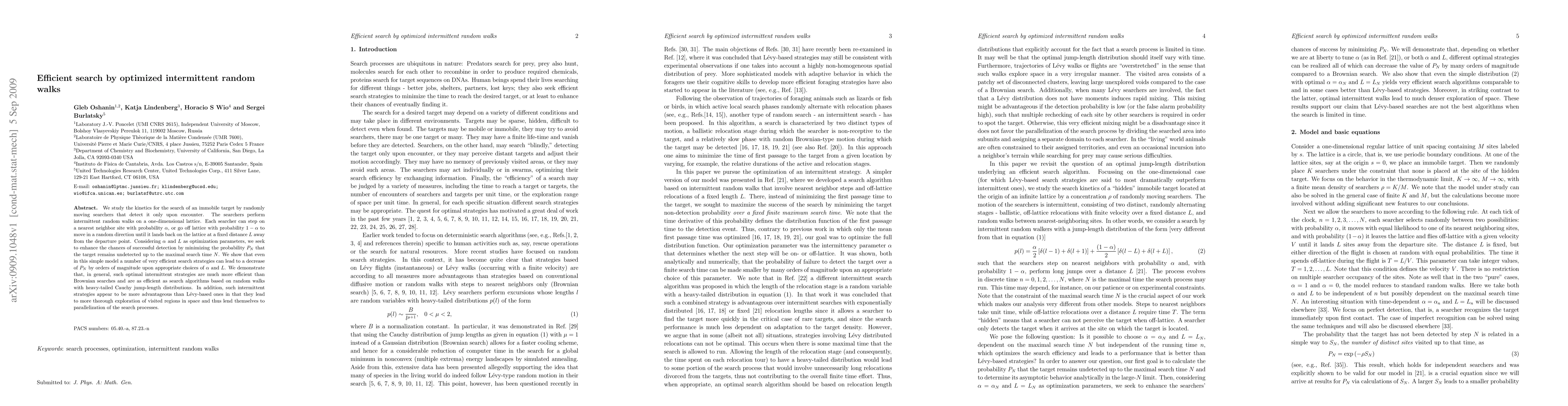 This paper investigates optimized intermittent random walks for efficient search on a one-dimensional lattice, showing that strategic choices of parameters can significantly reduce undetected target probability. The proposed strategies outperform Brownian searches and are comparable to heavy-tailed random walks, while also offering advantages in spatial exploration and parallelization.