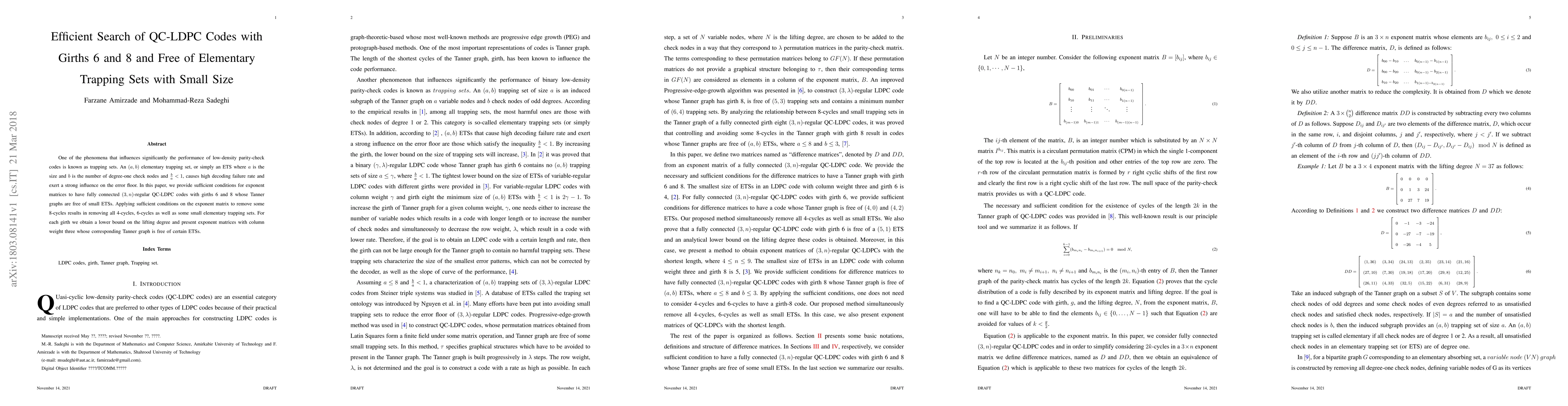 This paper investigates sufficient conditions to construct quasi-cyclic (QC) low-density parity-check (LDPC) codes with girths 6 and 8 that are free of small elementary trapping sets, thereby improving decoding performance and reducing error floors. It presents lower bounds on lifting degrees and provides specific exponent matrices to eliminate small ETSs and cycles.