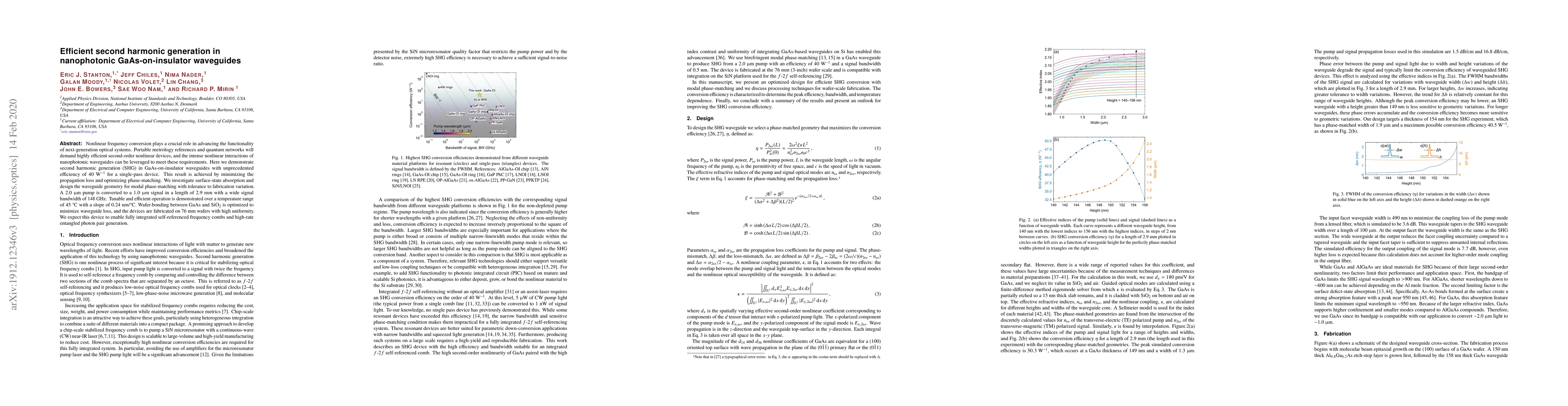 Nonlinear frequency conversion plays a crucial role in advancing the functionality of next-generation optical systems. Portable metrology references and quantum networks will demand highly efficient second-order nonlinear devices, and the intense nonlinear interactions of nanophotonic waveguides can be leveraged to meet these requirements. Here we demonstrate second harmonic generation (SHG) in GaAs-on-insulator waveguides with unprecedented efficiency of 40 W$^{-1}$ for a single-pass device. This result is achieved by minimizing the propagation loss and optimizing phase-matching. We investigate surface-state absorption and design the waveguide geometry for modal phase-matching with tolerance to fabrication variation. A 2.0 $\mu$m pump is converted to a 1.0 $\mu$m signal in a length of 2.9 mm with a wide signal bandwidth of 148 GHz. Tunable and efficient operation is demonstrated over a temperature range of 45 $^{\circ}$C with a slope of 0.24 nm/$^{\circ}$C. Wafer-bonding between GaAs and SiO$_2$ is optimized to minimize waveguide loss, and the devices are fabricated on 76 mm wafers with high uniformity. We expect this device to enable fully integrated self-referenced frequency combs and high-rate entangled photon pair generation.