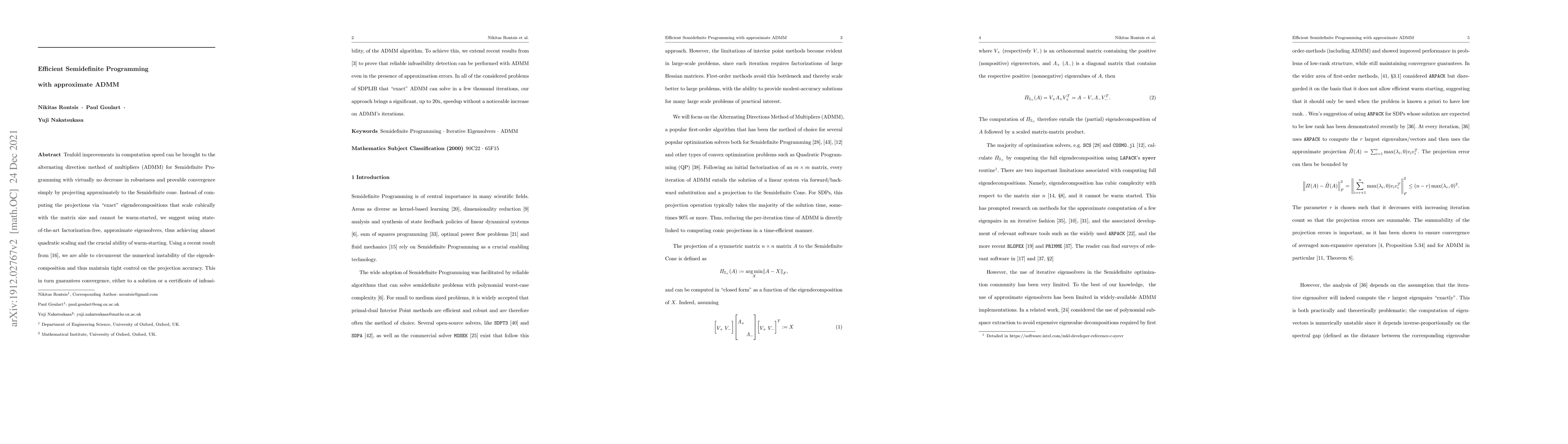 Researchers developed an efficient method to solve Semidefinite Programming problems using alternating direction method of multipliers (ADMM), achieving 10x speedup without compromising convergence or robustness.