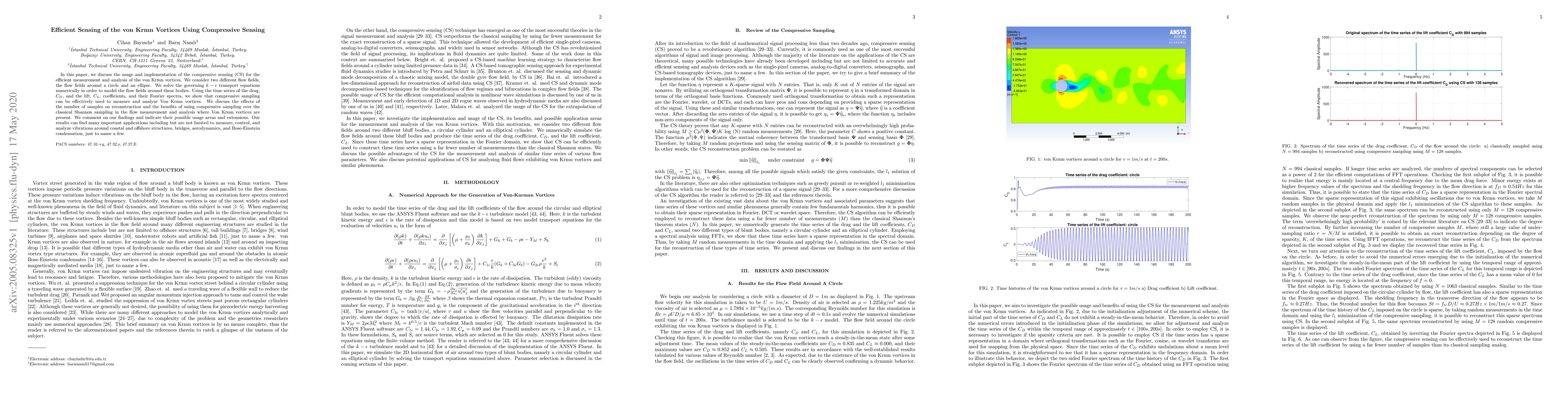 This paper explores the application of compressive sensing for efficient measurement of von Kármán vortices in flow fields around circular and elliptical bodies, demonstrating benefits over traditional Shannon sampling and potential applications in structural vibrations and aerodynamics.