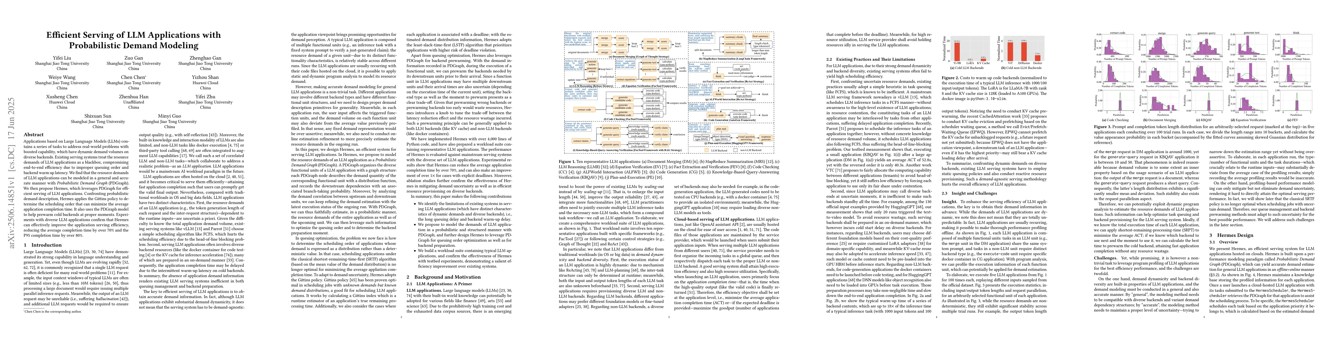 Applications based on Large Language Models (LLMs) contains a series of tasks to address real-world problems with boosted capability, which have dynamic demand volumes on diverse backends. Existing serving systems treat the resource demands of LLM applications as a blackbox, compromising end-to-end efficiency due to improper queuing order and backend warm up latency. We find that the resource demands of LLM applications can be modeled in a general and accurate manner with Probabilistic Demand Graph (PDGraph). We then propose Hermes, which leverages PDGraph for efficient serving of LLM applications. Confronting probabilistic demand description, Hermes applies the Gittins policy to determine the scheduling order that can minimize the average application completion time. It also uses the PDGraph model to help prewarm cold backends at proper moments. Experiments with diverse LLM applications confirm that Hermes can effectively improve the application serving efficiency, reducing the average completion time by over 70% and the P95 completion time by over 80%.