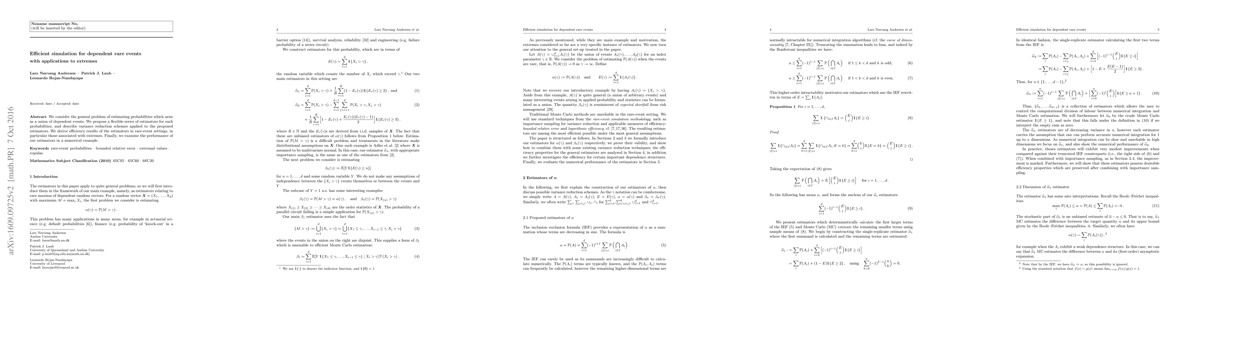 This paper introduces flexible estimators for probabilities of rare events that occur as a union of dependent events, with applications to extreme values. It provides efficiency results and variance reduction schemes for these estimators in various settings.