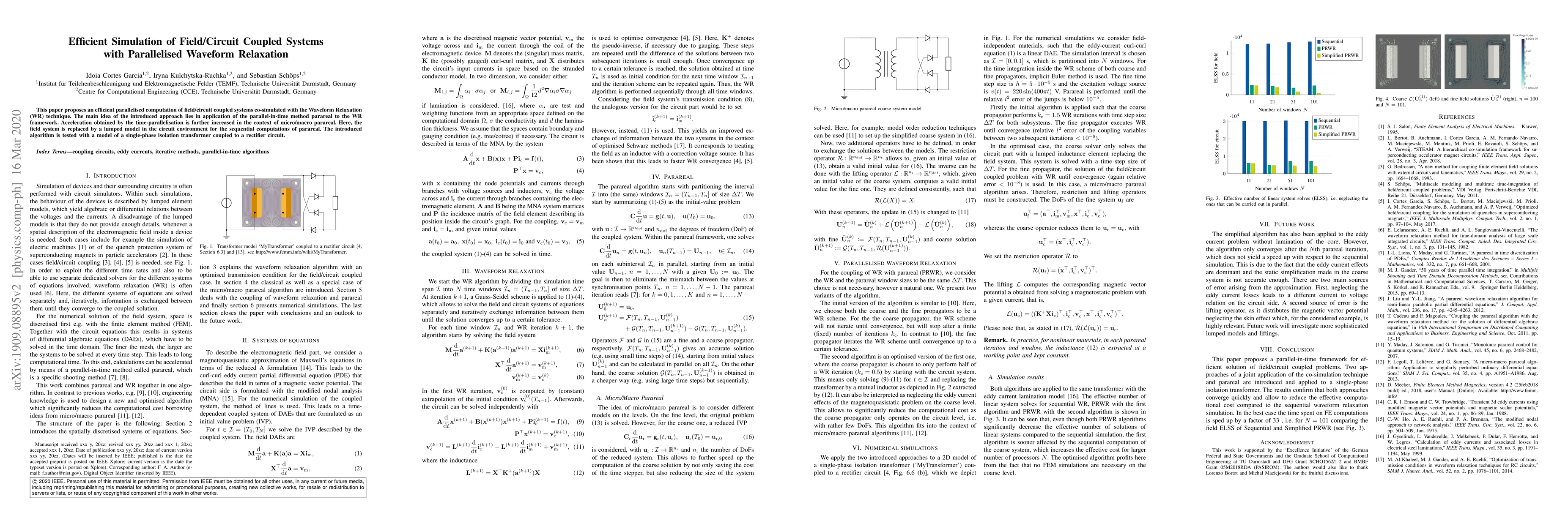 This paper presents a new method for simulating field-circuit coupled systems using parallelized waveform relaxation, which accelerates computation by dividing time into parallel segments.