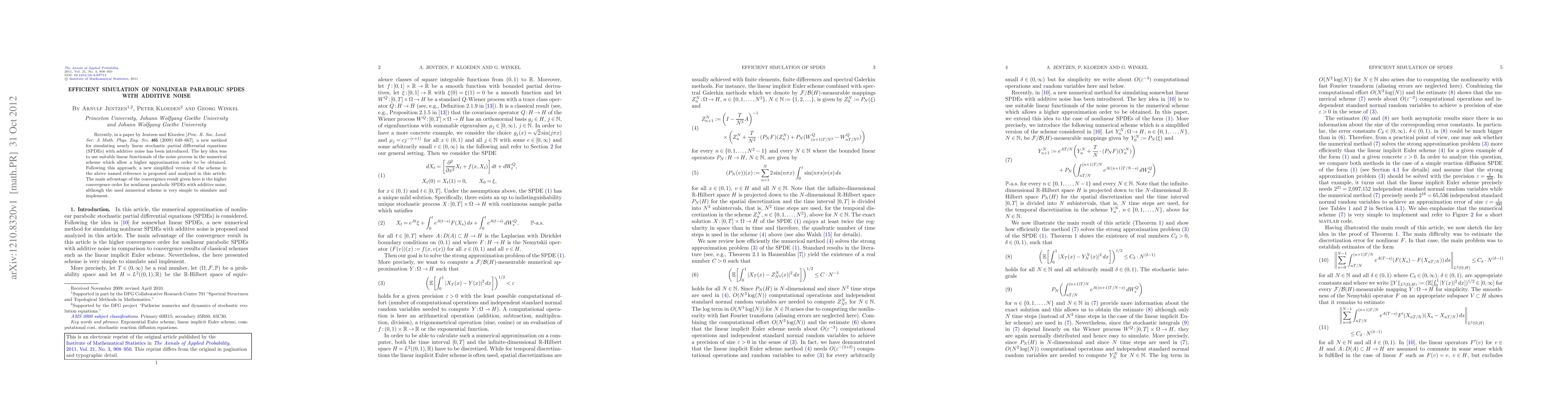 The paper presents a simplified numerical scheme for simulating nonlinear parabolic SPDEs with additive noise, achieving higher convergence orders than previous methods.