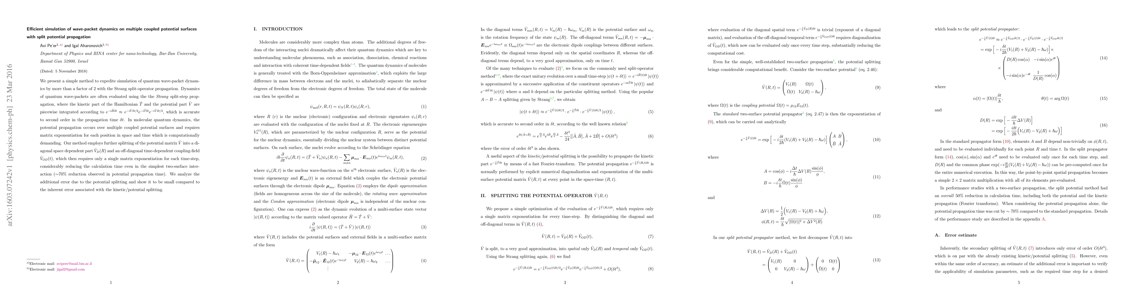 We present a simple method to expedite simulation of quantum wave-packet dynamics by more than a factor of $2$ with the Strang split-operator propagation. Dynamics of quantum wave-packets are often evaluated using the the \emph{Strang} split-step propagation, where the kinetic part of the Hamiltonian $\hat{T}$ and the potential part $\hat{V}$ are piecewise integrated according to $e^{- i \hat{H} \delta t} \approx e^{- i \hat{V} \delta t/2} e^{- i \hat{T}\delta t} e^{- i \hat{V} \delta t/2}$, which is accurate to second order in the propagation time $\delta t$. In molecular quantum dynamics, the potential propagation occurs over multiple coupled potential surfaces and requires matrix exponentiation for each position in space and time which is computationally demanding. Our method employs further splitting of the potential matrix $\hat{V}$ into a diagonal space dependent part $\hat{V}_{D}(R)$ and an off-diagonal time-dependent coupling-field $\hat{V}_{OD}(t)$, which then requires only a single matrix exponentiation for each time-step, considerably reducing the calculation time even in the simplest two-surface interaction ($\sim$70\% reduction observed in potential propagation time). We analyze the additional error due to the potential splitting and show it to be small compared to the inherent error associated with the kinetic/potential splitting.
