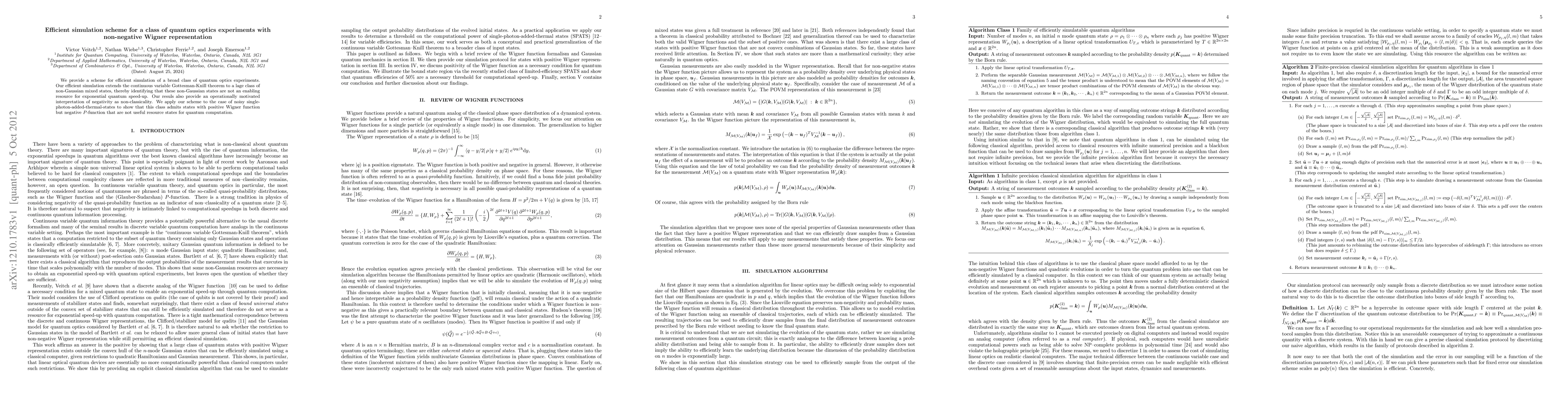 The research presents an efficient simulation scheme for a broad class of quantum optics experiments using non-negative Wigner representation, extending the continuous variable Gottesman-Knill theorem to non-Gaussian mixed states.