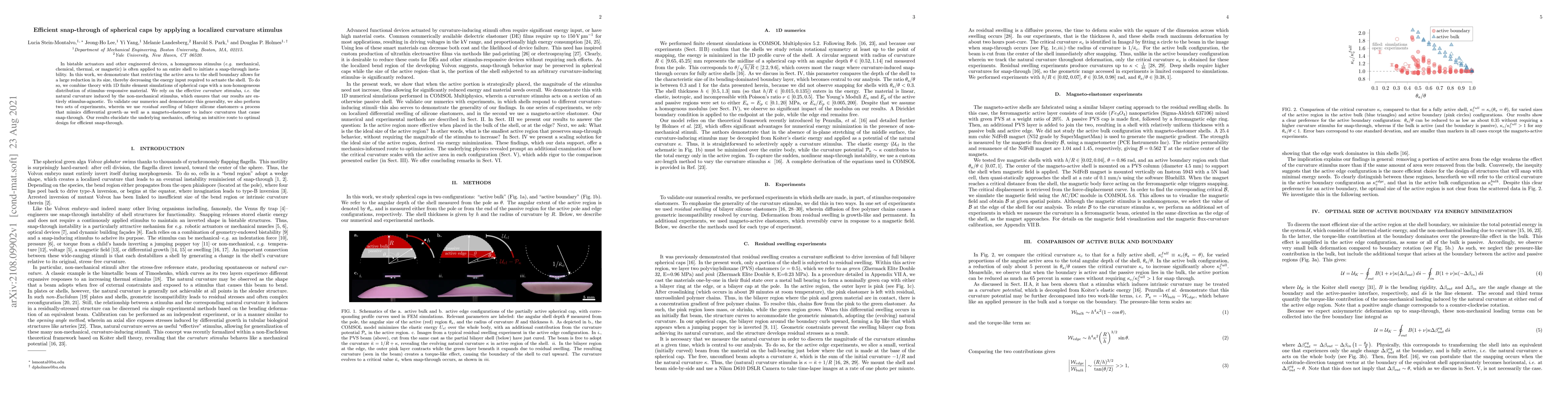 This work guides the design of efficient snapping structures by minimizing active area and stimulus magnitude, demonstrating efficacy and generality using residual swelling and magneto-active shells, and suggesting broad applicability to bistable actuators.