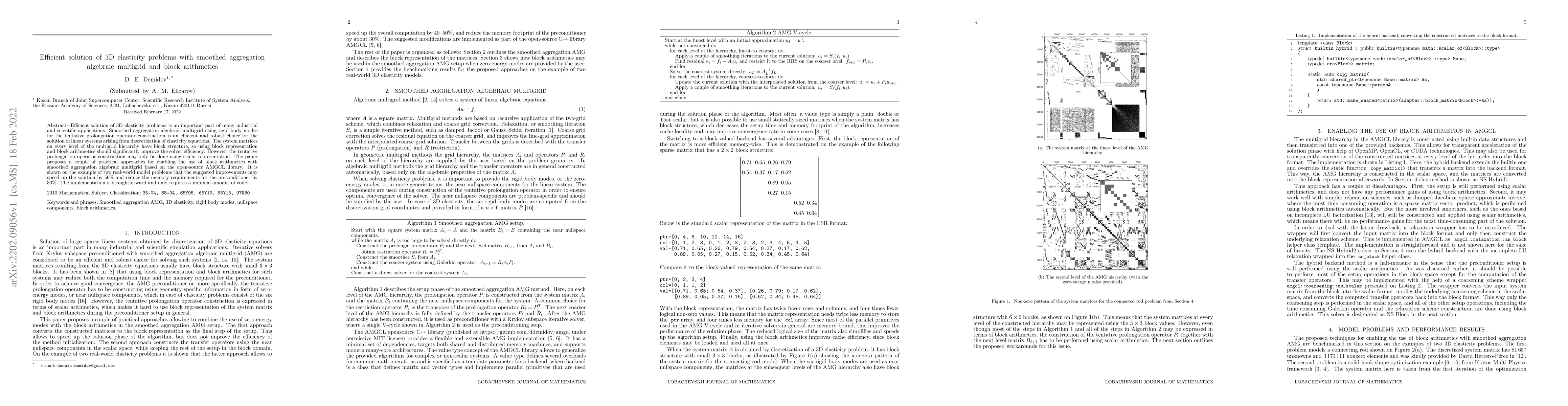 This paper proposes practical approaches to enhance the efficiency of smoothed aggregation algebraic multigrid methods for solving 3D elasticity problems, leveraging block arithmetics to improve solver speed and reduce memory usage, achieving up to a 50% speedup and a 30% reduction in memory requirements. The implementation is straightforward and requires minimal code changes.