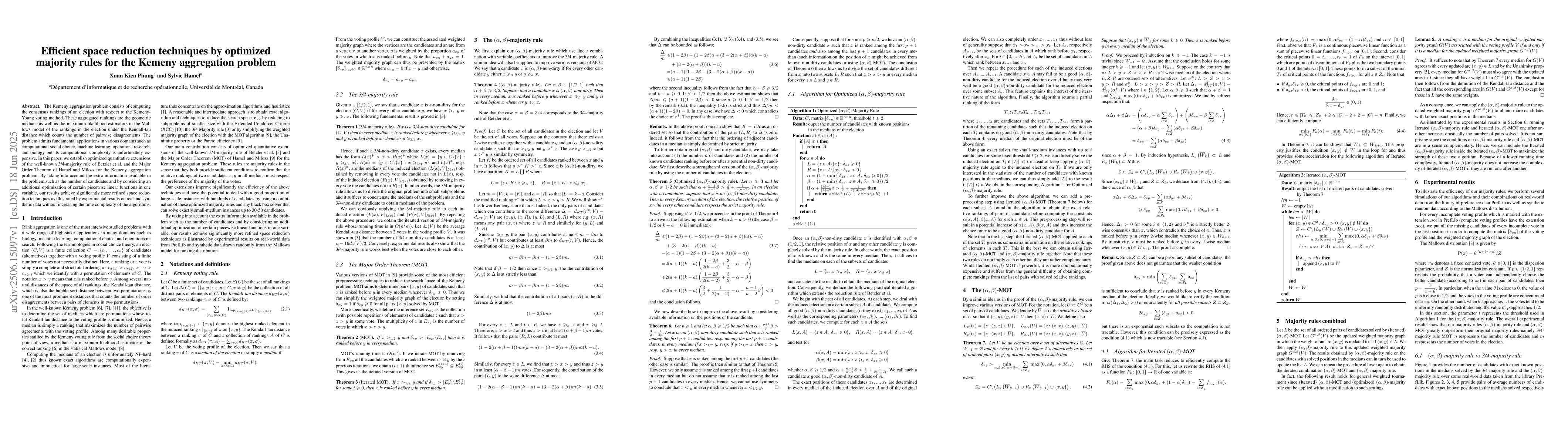The Kemeny aggregation problem consists of computing the consensus rankings of an election with respect to the Kemeny-Young voting method. These aggregated rankings are the geometric medians as well as the maximum likelihood estimators in the Mallows model of the rankings in the election under the Kendall-tau distance which counts the number of pairwise disagreements. The problem admits fundamental applications in various domains such as computational social choice, machine learning, operations research, and biology but its computational complexity is unfortunately expensive. In this paper, we establish optimized quantitative extensions of the well-known 3/4-majority rule of Betzler et al. and the Major Order Theorem of Hamel and Milosz for the Kemeny aggregation problem. By taking into account the extra information available in the problem such as the number of candidates and by considering an additional optimization of certain piecewise linear functions in one variable, our results achieve significantly more refined space reduction techniques as illustrated by experimental results on real and synthetic data without increasing the time complexity of the algorithms.