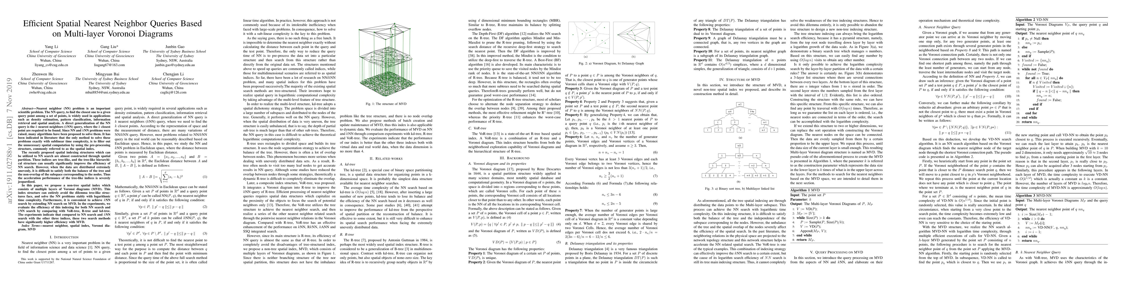 This paper proposes a multi-layer Voronoi diagram (MVD) based spatial index to efficiently solve nearest neighbor (NN) and k-nearest neighbor (kNN) queries. Unlike tree-like indices, MVD avoids the balance and non-overlap dilemma, achieving logarithmic time complexity and significantly higher efficiency in experiments compared to VoR-tree, R-tree, and kd-tree.