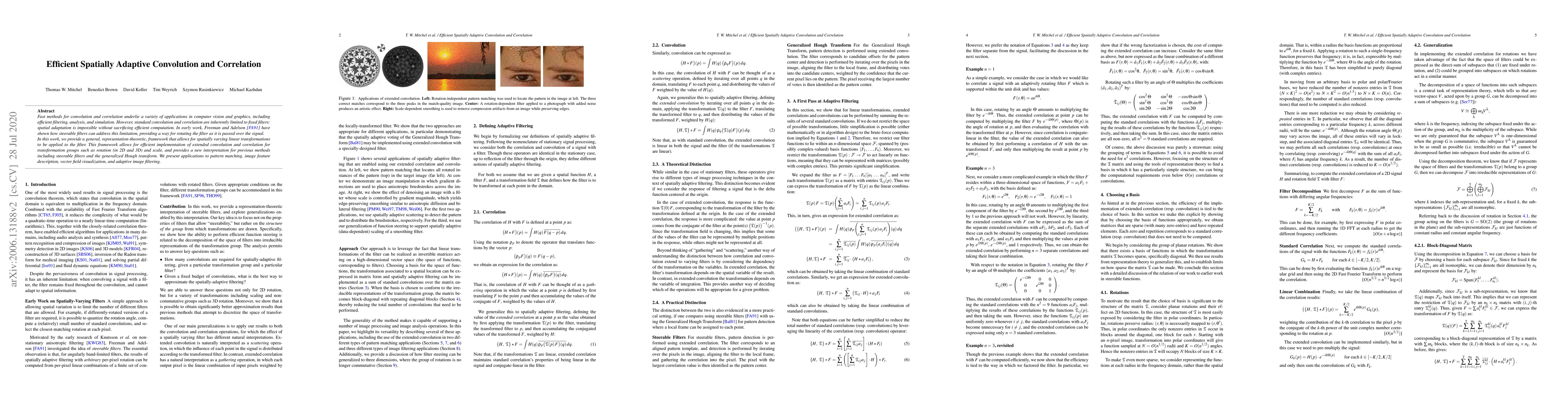 Researchers developed a framework for spatially adaptive convolution and correlation, enabling efficient filtering and analysis in computer vision and graphics. This allows for flexible applications such as pattern matching, image feature description, and adaptive image filtering.