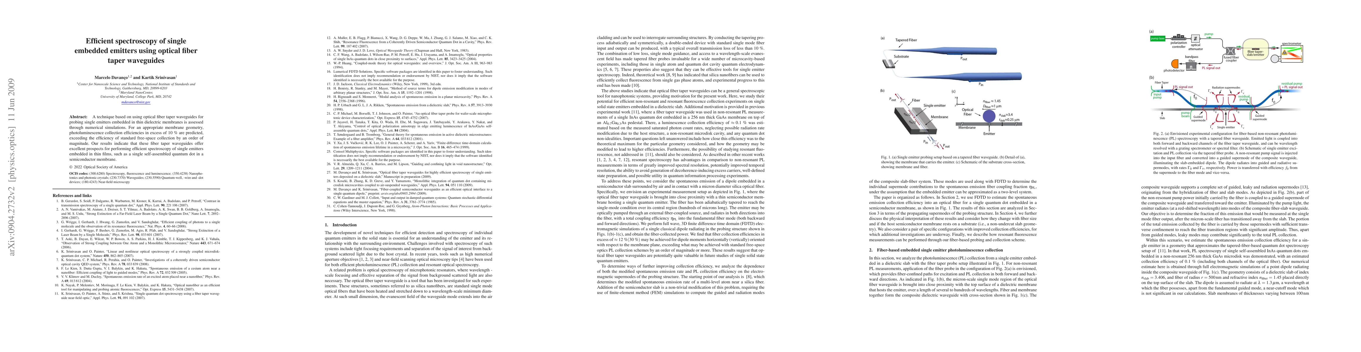 This paper proposes a technique using optical fiber taper waveguides to efficiently probe single emitters embedded in thin dielectric membranes, achieving photoluminescence collection efficiencies over 10%—an order of magnitude greater than standard free-space collection methods. The method shows great potential for spectroscopy of single quantum dots in semiconductor membranes.