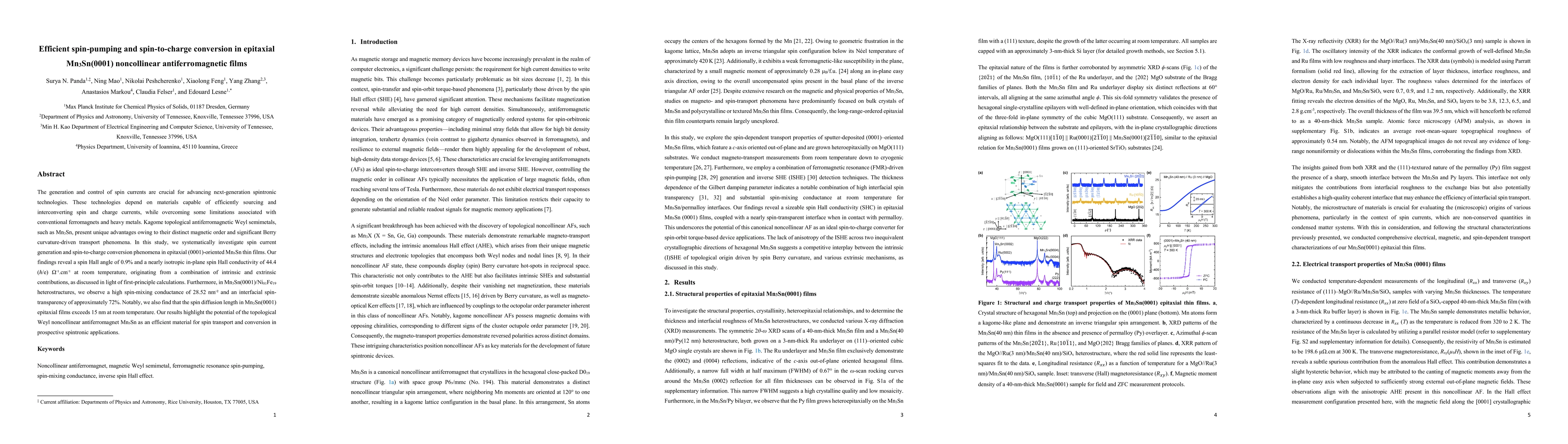 The generation and control of spin currents are crucial for advancing next-generation spintronic technologies. These technologies depend on materials capable of efficiently sourcing and interconverting spin and charge currents, while overcoming some limitations associated with conventional ferromagnets and heavy metals. Kagome topological antiferromagnetic Weyl semimetals, such as Mn$_3$Sn, present unique advantages owing to their distinct magnetic order and significant Berry curvature-driven transport phenomena. In this study, we systematically investigate spin current generation and spin-to-charge conversion phenomena in epitaxial (0001)-oriented Mn$_3$Sn thin films. Our findings reveal a spin Hall angle of 0.9$\%$ and a nearly isotropic in-plane spin Hall conductivity of 44.4~($\hbar$/e) $\Omega^{-1}$.cm$^{-1}$ at room temperature, originating from a combination of intrinsic and extrinsic contributions, as discussed in light of first-principle calculations. Furthermore, in Mn$_3$Sn(0001)/Ni$_{81}$Fe$_{19}$ heterostructures, we observe a high spin-mixing conductance of 28.52 nm$^{-2}$ and an interfacial spin-transparency of approximately 72$\%$. Notably, we also find that the spin diffusion length in Mn$_3$Sn(0001) epitaxial films exceeds 15 nm at room temperature. Our results highlight the potential of the topological Weyl noncollinear antiferromagnet Mn$_3$Sn as an efficient material for spin transport and conversion in prospective spintronic applications.