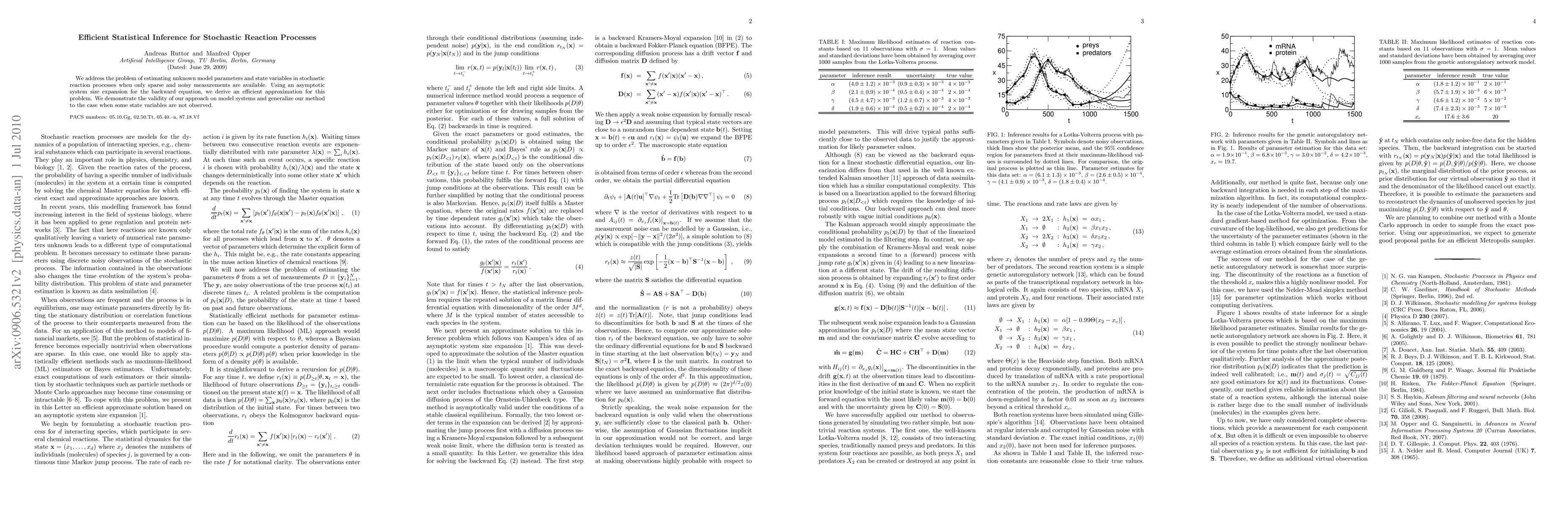 Researchers developed an efficient method for estimating model parameters in stochastic reaction processes with limited and noisy data. Their approach uses a system size expansion to derive an approximation that accurately solves the problem of unknown state variables and parameters.