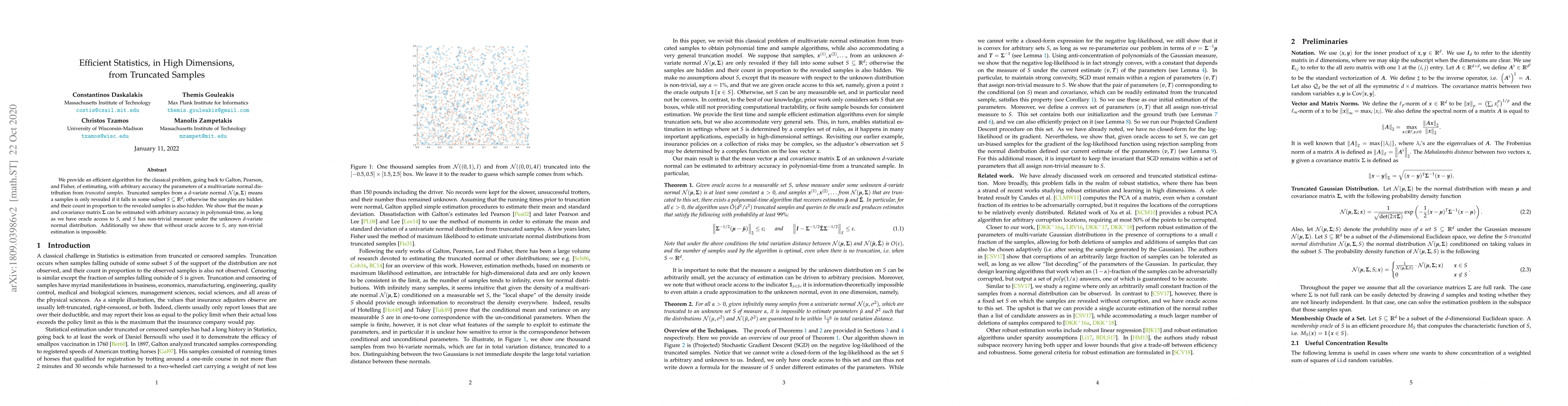 We provide an efficient algorithm for the classical problem, going back to Galton, Pearson, and Fisher, of estimating, with arbitrary accuracy the parameters of a multivariate normal distribution from truncated samples. Truncated samples from a $d$-variate normal ${\cal N}(\mathbf{\mu},\mathbf{\Sigma})$ means a samples is only revealed if it falls in some subset $S \subseteq \mathbb{R}^d$; otherwise the samples are hidden and their count in proportion to the revealed samples is also hidden. We show that the mean $\mathbf{\mu}$ and covariance matrix $\mathbf{\Sigma}$ can be estimated with arbitrary accuracy in polynomial-time, as long as we have oracle access to $S$, and $S$ has non-trivial measure under the unknown $d$-variate normal distribution. Additionally we show that without oracle access to $S$, any non-trivial estimation is impossible.