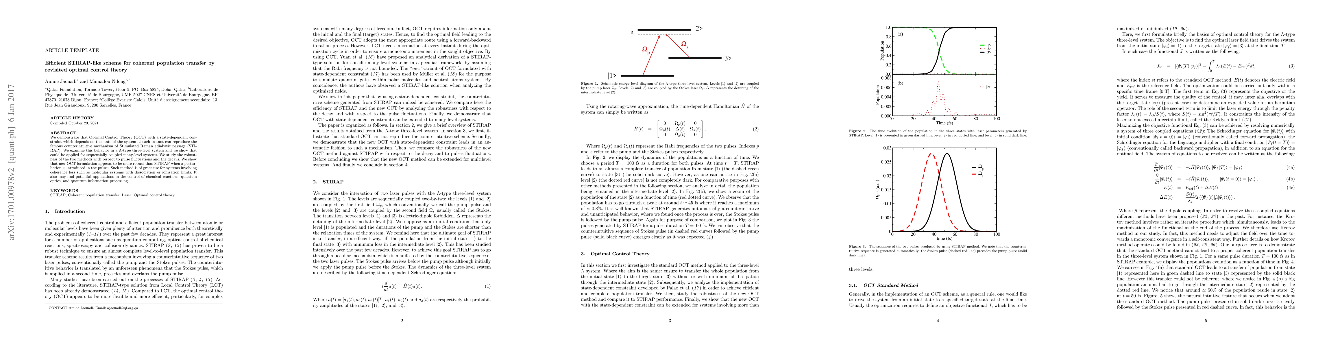 We demonstrate that Optimal Control Theory (OCT) with a state-dependent constraint which depends on the state of the system at each instant can reproduce the famous counterintuitive mechanism of Stimulated Raman adiabatic passage (STIRAP). We examine this behavior in a {\Lambda}-type three-level system and we show that could be applied for sequentially coupled many-level systems. We study the robustness of the two methods with respect to pulse fluctuations and the decays. We show that new OCT formulation appears to be more robust than STIRAP when a perturbation is introduced in the pulses. Such method is of great use for systems involving coherence loss such as molecular systems with dissociation or ionization limits. It also may find potential applications in the control of chemical reactions, quantum optics, and quantum information processing.