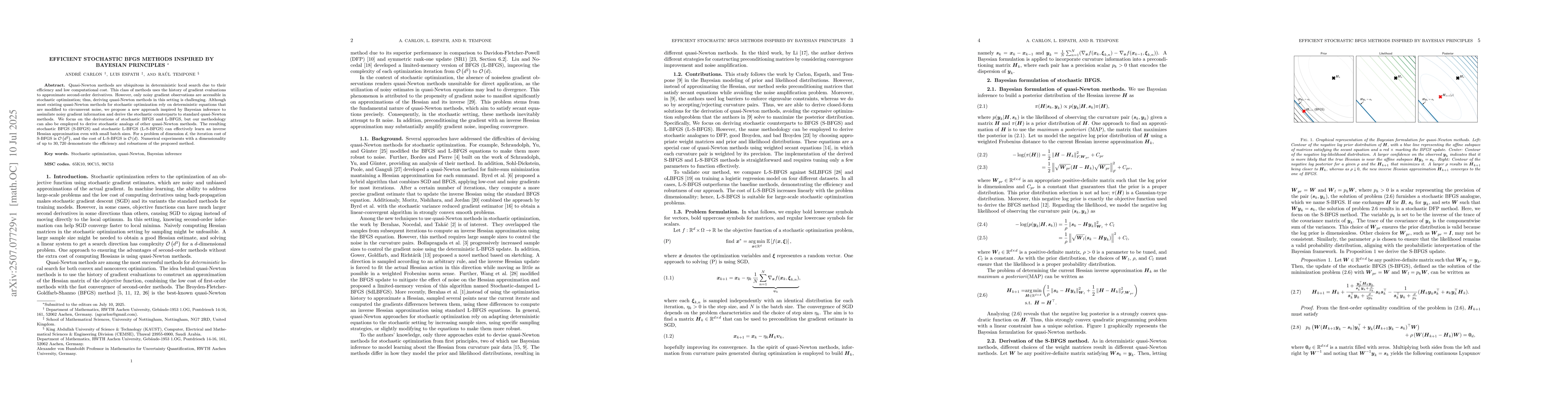 Quasi-Newton methods are ubiquitous in deterministic local search due to their efficiency and low computational cost. This class of methods uses the history of gradient evaluations to approximate second-order derivatives. However, only noisy gradient observations are accessible in stochastic optimization; thus, deriving quasi-Newton methods in this setting is challenging. Although most existing quasi-Newton methods for stochastic optimization rely on deterministic equations that are modified to circumvent noise, we propose a new approach inspired by Bayesian inference to assimilate noisy gradient information and derive the stochastic counterparts to standard quasi-Newton methods. We focus on the derivations of stochastic BFGS and L-BFGS, but our methodology can also be employed to derive stochastic analogs of other quasi-Newton methods. The resulting stochastic BFGS (S-BFGS) and stochastic L-BFGS (L-S-BFGS) can effectively learn an inverse Hessian approximation even with small batch sizes. For a problem of dimension $d$, the iteration cost of S-BFGS is $\bigO{d^2}$, and the cost of L-S-BFGS is $\bigO{d}$. Numerical experiments with a dimensionality of up to $30,720$ demonstrate the efficiency and robustness of the proposed method.