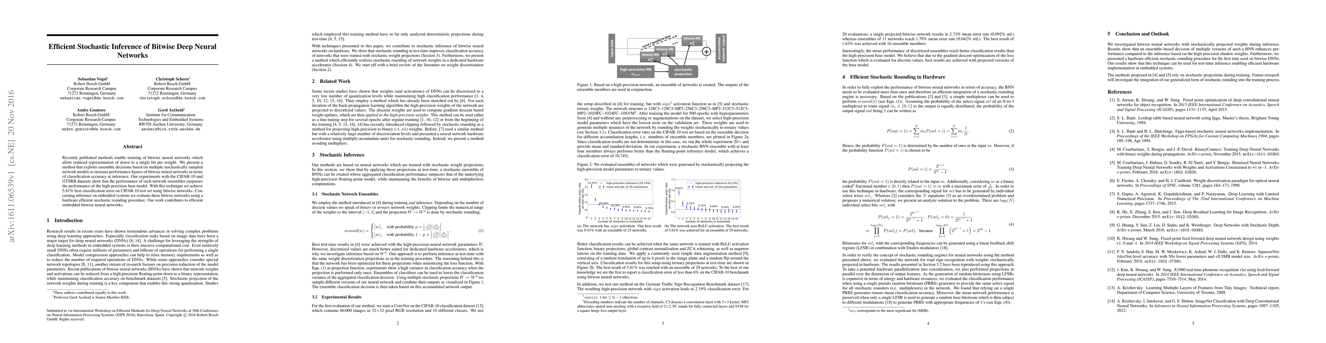 This paper proposes an ensemble method for bitwise deep neural networks, leveraging multiple stochastically sampled models to enhance inference performance. Experiments on CIFAR-10 and GTSRB datasets demonstrate that these ensembles outperform high-precision base models, achieving a 5.81% classification error on CIFAR-10, while also being evaluated for hardware efficiency on embedded systems.
