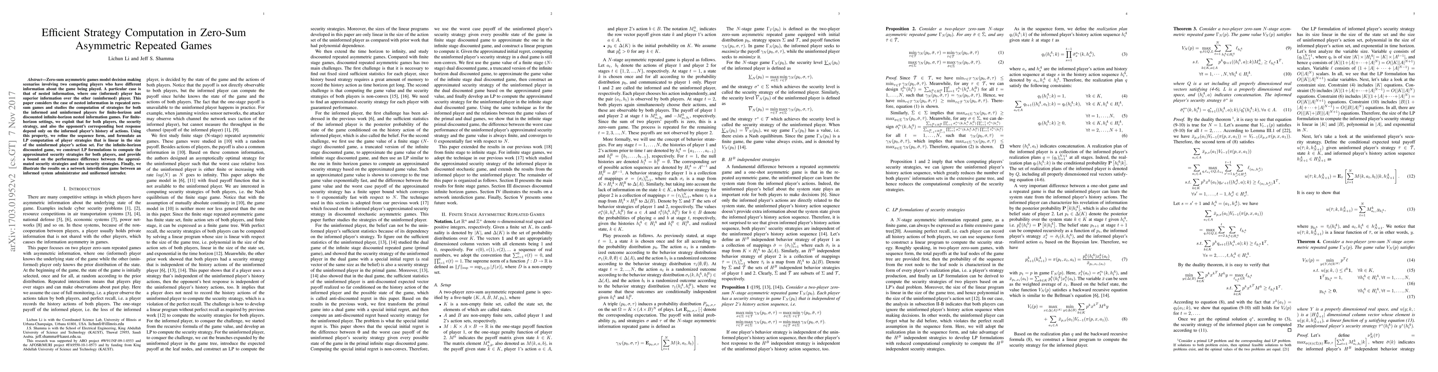 This paper develops efficient strategies for computing optimal strategies in zero-sum asymmetric repeated games with nested information, proposing linear programming formulations for both finite-horizon and discounted infinite-horizon scenarios, and demonstrating the approach through a network interdiction game.