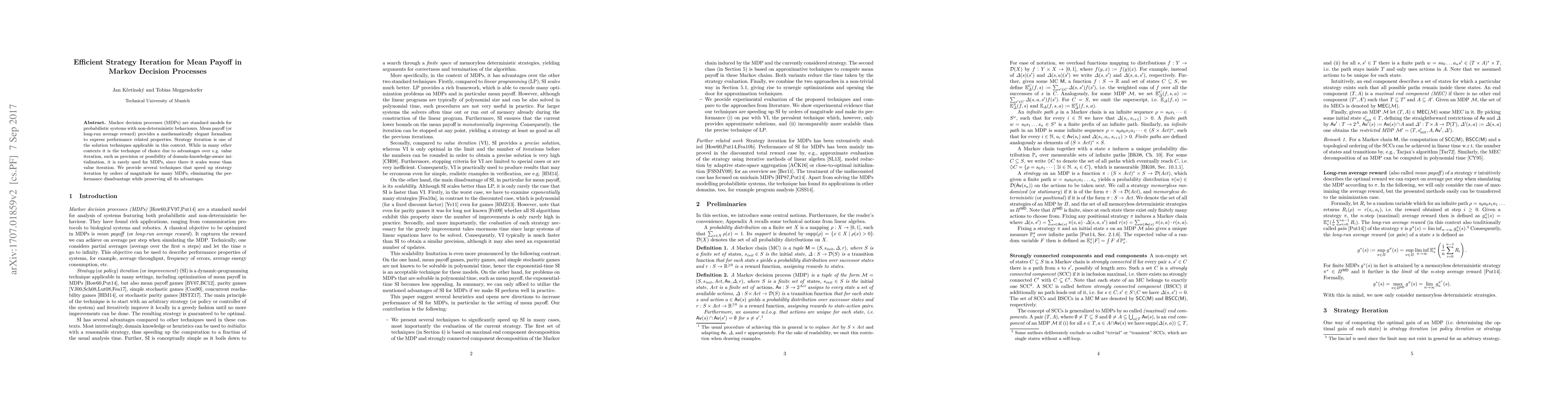 This paper presents techniques to significantly enhance the efficiency of strategy iteration for solving mean payoff in Markov decision processes (MDPs), overcoming its scalability issues compared to value iteration while retaining its benefits. The proposed methods achieve substantial speedups, making strategy iteration a viable alternative for solving MDPs.