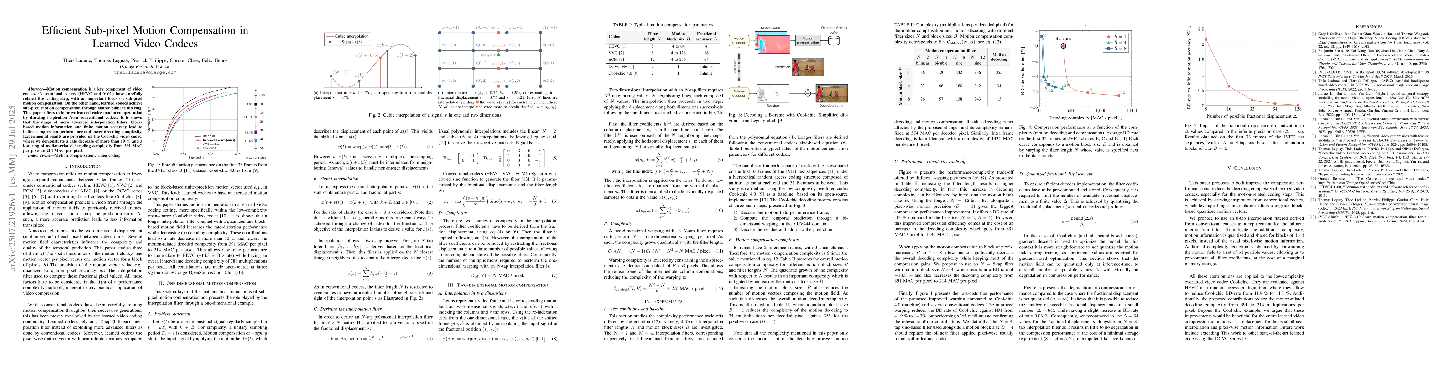 Motion compensation is a key component of video codecs. Conventional codecs (HEVC and VVC) have carefully refined this coding step, with an important focus on sub-pixel motion compensation. On the other hand, learned codecs achieve sub-pixel motion compensation through simple bilinear filtering. This paper offers to improve learned codec motion compensation by drawing inspiration from conventional codecs. It is shown that the usage of more advanced interpolation filters, block-based motion information and finite motion accuracy lead to better compression performance and lower decoding complexity. Experimental results are provided on the Cool-chic video codec, where we demonstrate a rate decrease of more than 10% and a lowering of motion-related decoding complexity from 391 MAC per pixel to 214 MAC per pixel. All contributions are made open-source at https://github.com/Orange-OpenSource/Cool-Chic