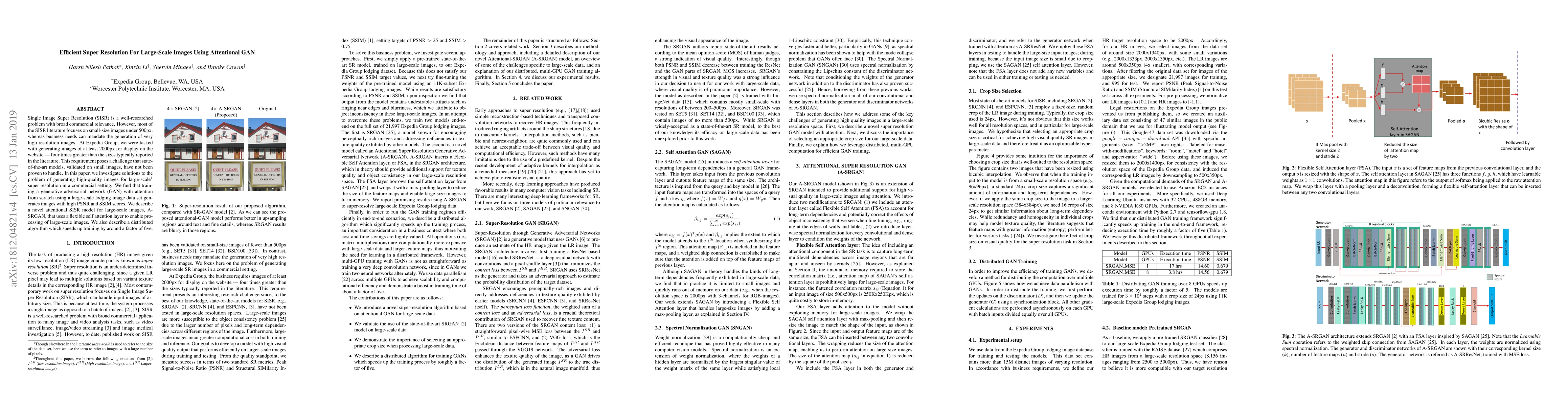 Single Image Super Resolution (SISR) is a well-researched problem with broad commercial relevance. However, most of the SISR literature focuses on small-size images under 500px, whereas business needs can mandate the generation of very high resolution images. At Expedia Group, we were tasked with generating images of at least 2000px for display on the website, four times greater than the sizes typically reported in the literature. This requirement poses a challenge that state-of-the-art models, validated on small images, have not been proven to handle. In this paper, we investigate solutions to the problem of generating high-quality images for large-scale super resolution in a commercial setting. We find that training a generative adversarial network (GAN) with attention from scratch using a large-scale lodging image data set generates images with high PSNR and SSIM scores. We describe a novel attentional SISR model for large-scale images, A-SRGAN, that uses a Flexible Self Attention layer to enable processing of large-scale images. We also describe a distributed algorithm which speeds up training by around a factor of five.
