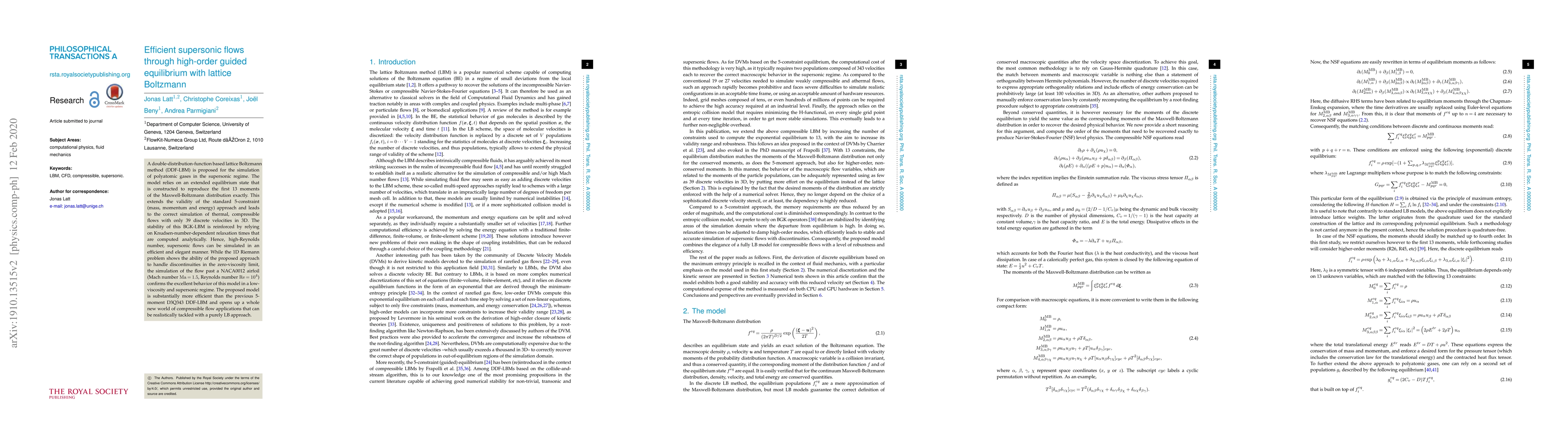 A double-distribution-function based lattice Boltzmann method (DDF-LBM) is proposed for the simulation of polyatomic gases in the supersonic regime. The model relies on an extended equilibrium state that is constructed to reproduce the first 13 moments of the Maxwell-Boltzmann distribution exactly. This extends the validity of the standard 5-constraint (mass, momentum and energy) approach and leads to the correct simulation of thermal, compressible flows with only 39 discrete velocities in 3D. The stability of this BGK-LBM is reinforced by relying on Knudsen-number-dependent relaxation times that are computed analytically. Hence, high-Reynolds number, supersonic flows can be simulated in an efficient and elegant manner. While the 1D Riemann problem shows the ability of the proposed approach to handle discontinuities in the zero-viscosity limit, the simulation of the flow past a NACA0012 airfoil (Mach number $\mathrm{Ma}=1.5$, Reynolds number $\mathrm{Re=10^4}$) confirms the excellent behavior of this model in a low-viscosity and supersonic regime. The proposed model is substantially more efficient than the previous 5-moment D3Q343 DDF-LBM and opens up a whole new world of compressible flow applications that can be realistically tackled with a purely LB approach.