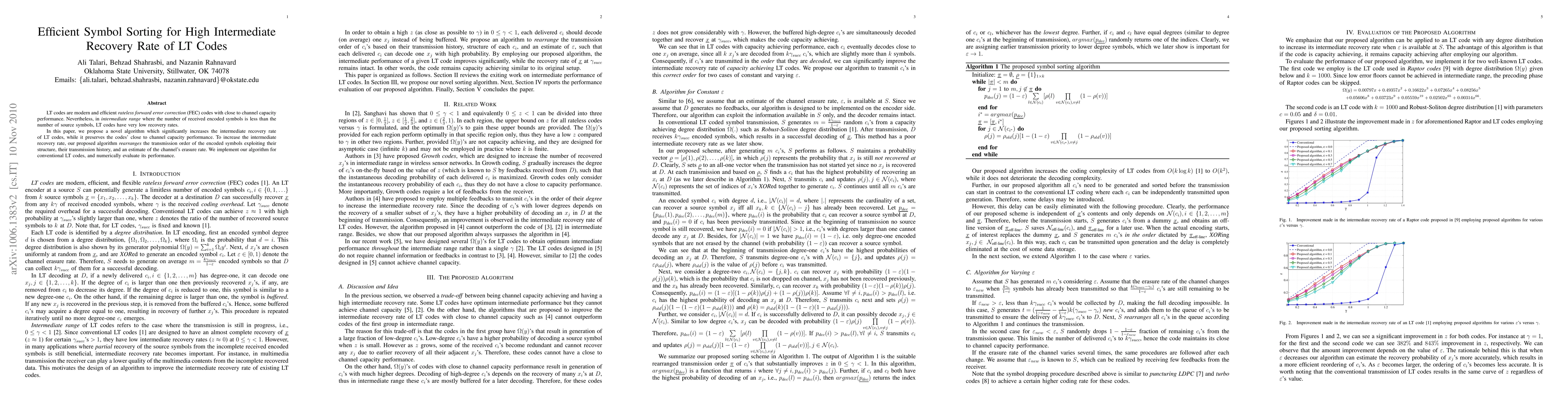 This paper proposes a novel algorithm to enhance the intermediate recovery rate of LT codes without compromising their near-channel capacity performance. The algorithm rearranges the transmission order of encoded symbols based on their structure, transmission history, and channel erasure rate estimates.