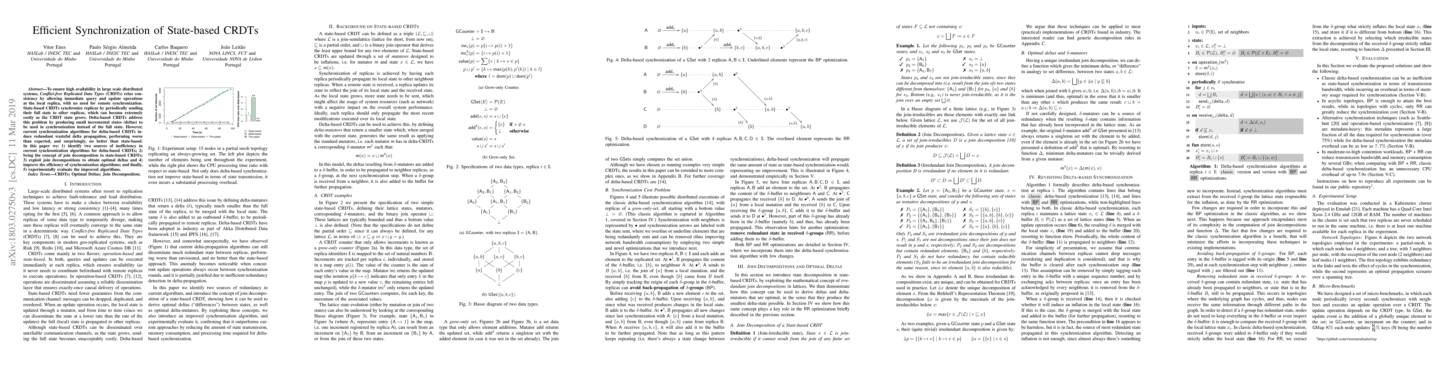 This paper identifies inefficiencies in current delta-based CRDT synchronization algorithms, introduces join decomposition to optimize delta generation, and proposes improved synchronization methods to enhance efficiency over state-based CRDTs. The effectiveness of the new algorithms is evaluated through empirical analysis.
