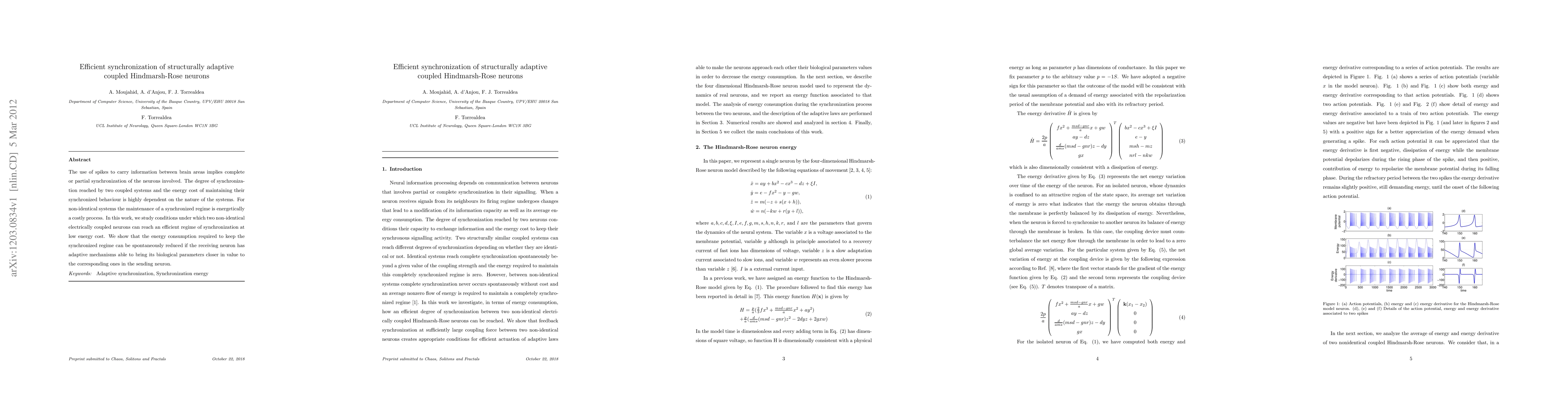 Research finds that adaptive mechanisms in receiving neurons can reduce energy cost of synchronizing with sending neurons, enabling efficient synchronization at lower energy expenditure.