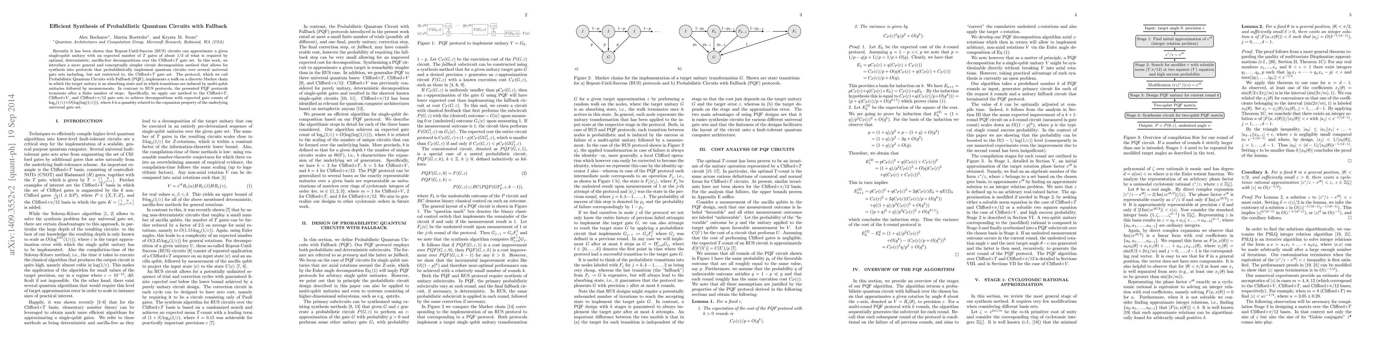 Researchers introduced a new method called Probabilistic Quantum Circuits with Fallback (PQF), which efficiently synthesizes probabilistic quantum circuits using multi-qubit unitaries and measurements, achieving gate counts of $\log_b(1/\varepsilon) + O(\log(\log(1/\varepsilon)))$.