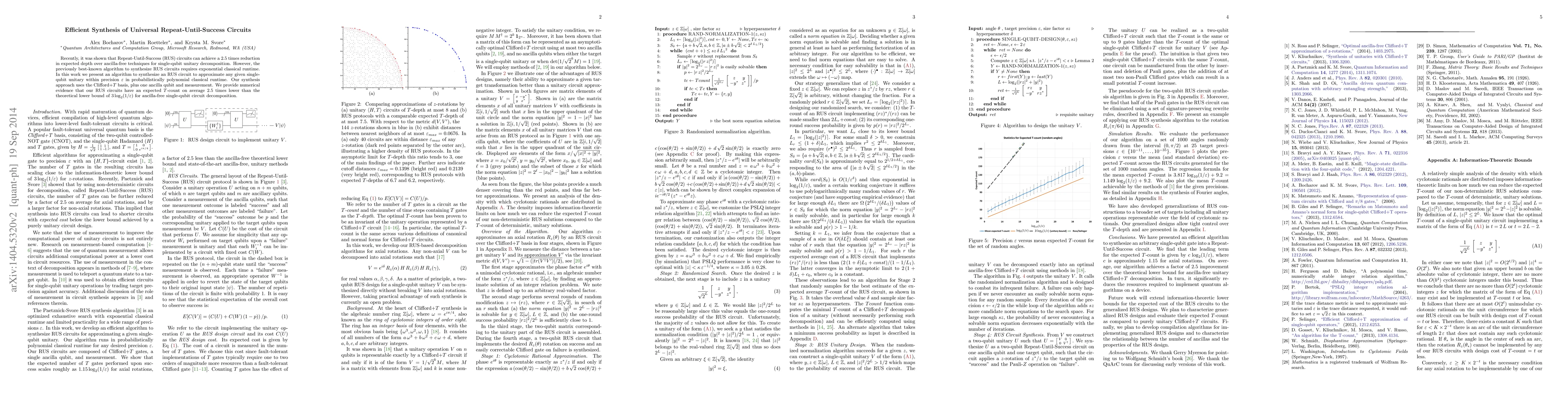 Recently, it was shown that Repeat-Until-Success (RUS) circuits can achieve a $2.5$ times reduction in expected $T$-count over ancilla-free techniques for single-qubit unitary decomposition. However, the previously best known algorithm to synthesize RUS circuits requires exponential classical runtime. In this paper we present an algorithm to synthesize an RUS circuit to approximate any given single-qubit unitary within precision $\varepsilon$ in probabilistically polynomial classical runtime. Our synthesis approach uses the Clifford+$T$ basis, plus one ancilla qubit and measurement. We provide numerical evidence that our RUS circuits have an expected $T$-count on average $2.5$ times lower than the theoretical lower bound of $3 \log_2 (1/\varepsilon)$ for ancilla-free single-qubit circuit decomposition.
