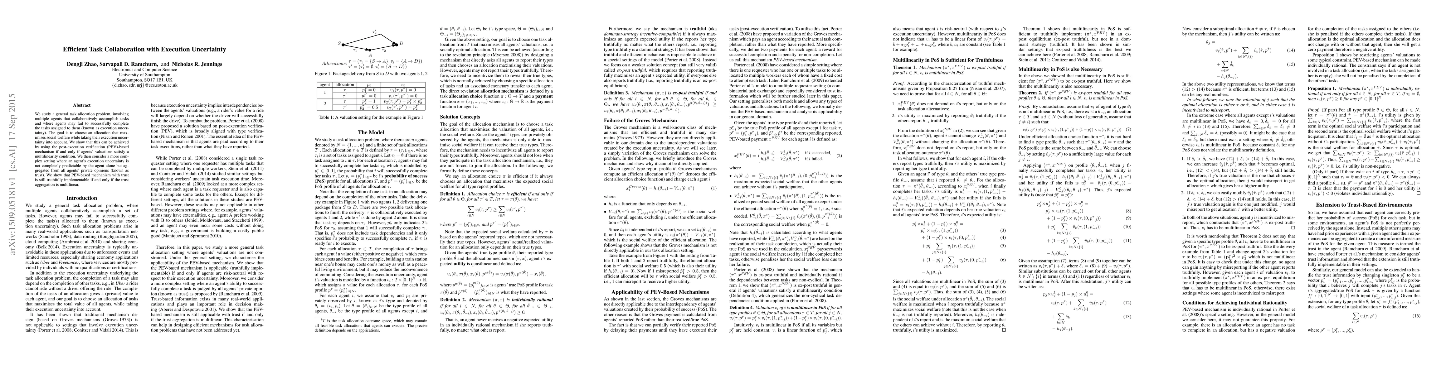 A new mechanism allows for efficient task collaboration under execution uncertainty by leveraging post-execution verification if agent evaluations satisfy a multilinearity condition. Trust-based mechanisms also work under similar conditions.