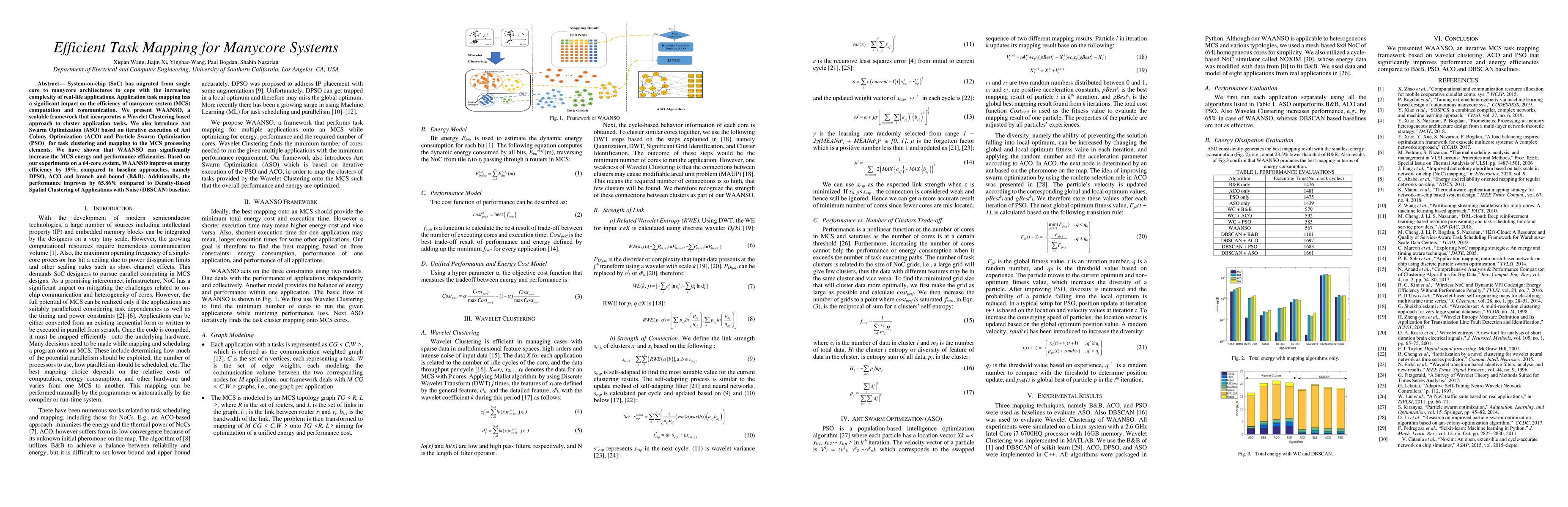 The research introduces WAANSO, a framework for task mapping in manycore systems (MCS) that combines Wavelet Clustering with Ant Swarm Optimization (ASO) based on Ant Colony Optimization (ACO) and Particle Swarm Optimization (PSO).