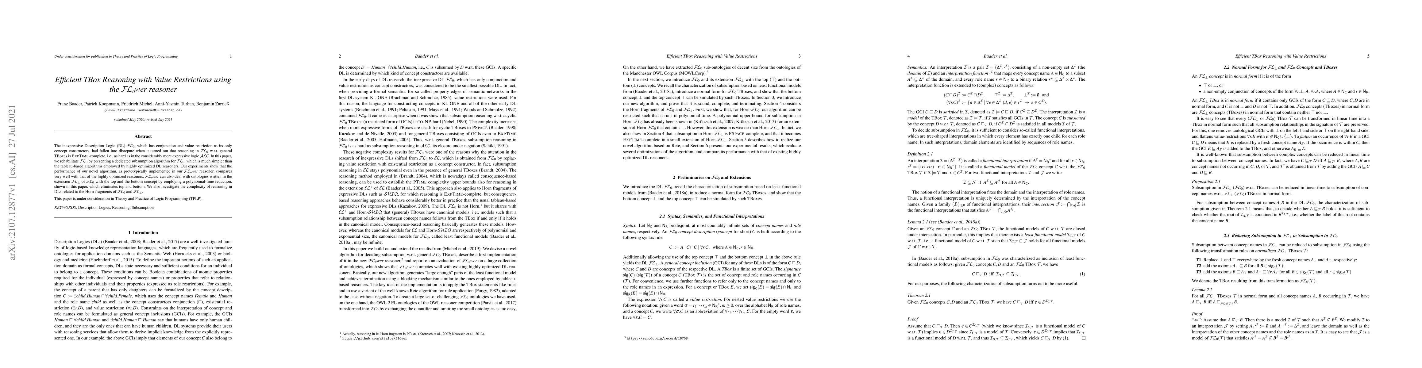 A new algorithm for efficient TBox reasoning in the Description Logic $ ext{ extcal{FL}}_0$, which was thought to be less expressive than other logics, has been developed, outperforming existing reasoners in experiments.