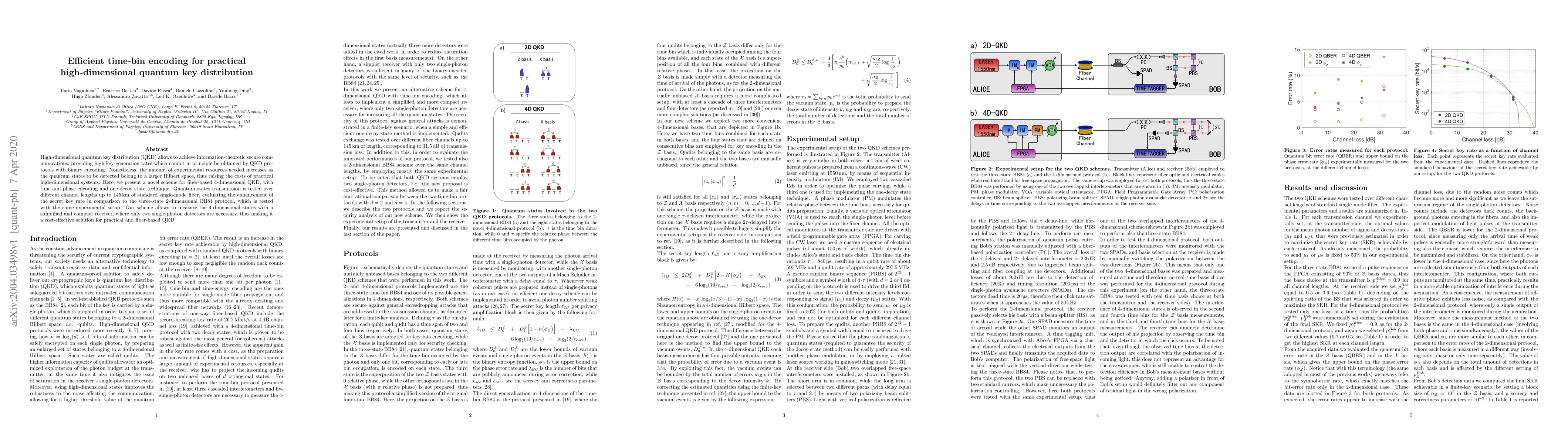 A new scheme for 4-dimensional quantum key distribution via time and phase encoding and one-decoy state technique enhances secret key rates compared to a 2-dimensional protocol, making it a cost-effective solution for practical fiber-based QKD systems.
