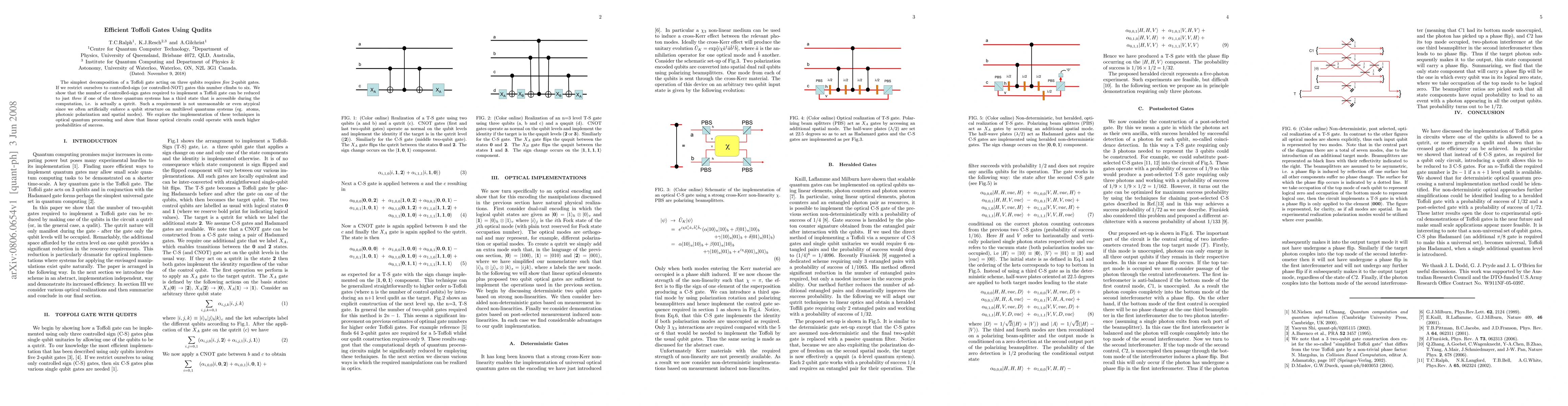 Researchers found a way to build a Toffoli gate using just three controlled-sign gates if one of the qubits is actually a third state, or qutrit, instead of a regular two-state qubit, potentially increasing success probabilities in optical quantum processing.