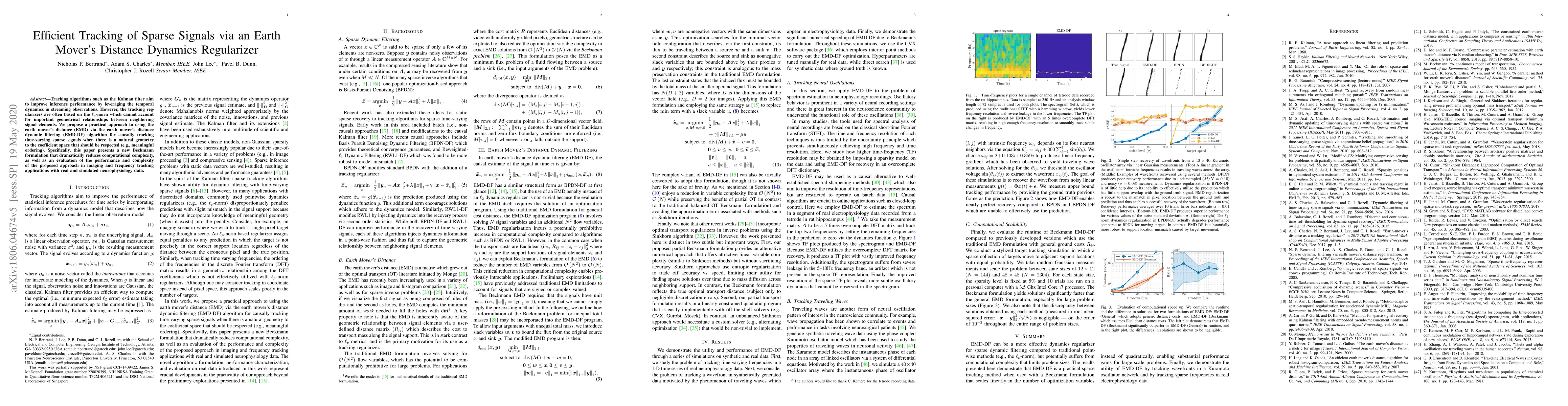 Tracking algorithms such as the Kalman filter aim to improve inference performance by leveraging the temporal dynamics in streaming observations. However, the tracking regularizers are often based on the $\ell_p$-norm which cannot account for important geometrical relationships between neighboring signal elements. We propose a practical approach to using the earth mover's distance (EMD) via the earth mover's distance dynamic filtering (EMD-DF) algorithm for causally tracking time-varying sparse signals when there is a natural geometry to the coefficient space that should be respected (e.g., meaningful ordering). Specifically, this paper presents a new Beckmann formulation that dramatically reduces computational complexity, as well as an evaluation of the performance and complexity of the proposed approach in imaging and frequency tracking applications with real and simulated neurophysiology data.