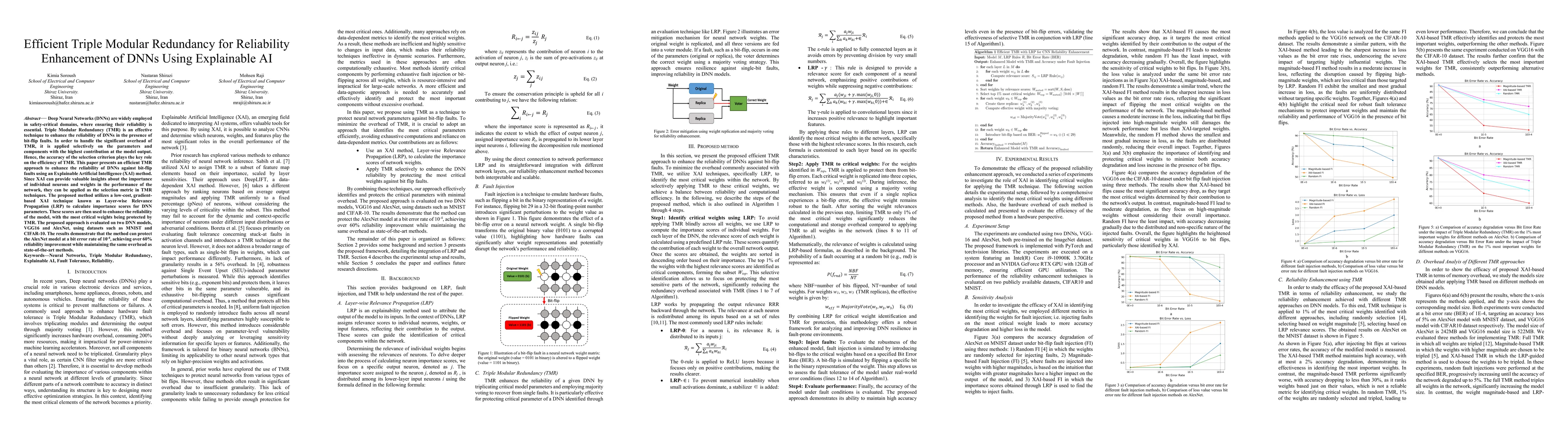 Deep Neural Networks (DNNs) are widely employed in safety-critical domains, where ensuring their reliability is essential. Triple Modular Redundancy (TMR) is an effective technique to enhance the reliability of DNNs in the presence of bit-flip faults. In order to handle the significant overhead of TMR, it is applied selectively on the parameters and components with the highest contribution at the model output. Hence, the accuracy of the selection criterion plays the key role on the efficiency of TMR. This paper presents an efficient TMR approach to enhance the reliability of DNNs against bit-flip faults using an Explainable Artificial Intelligence (XAI) method. Since XAI can provide valuable insights about the importance of individual neurons and weights in the performance of the network, they can be applied as the selection metric in TMR techniques. The proposed method utilizes a low-cost, gradient-based XAI technique known as Layer-wise Relevance Propagation (LRP) to calculate importance scores for DNN parameters. These scores are then used to enhance the reliability of the model, with the most critical weights being protected by TMR. The proposed approach is evaluated on two DNN models, VGG16 and AlexNet, using datasets such as MNIST and CIFAR-10. The results demonstrate that the method can protect the AlexNet model at a bit error rate of 10-4, achieving over 60% reliability improvement while maintaining the same overhead as state-of-the-art methods.