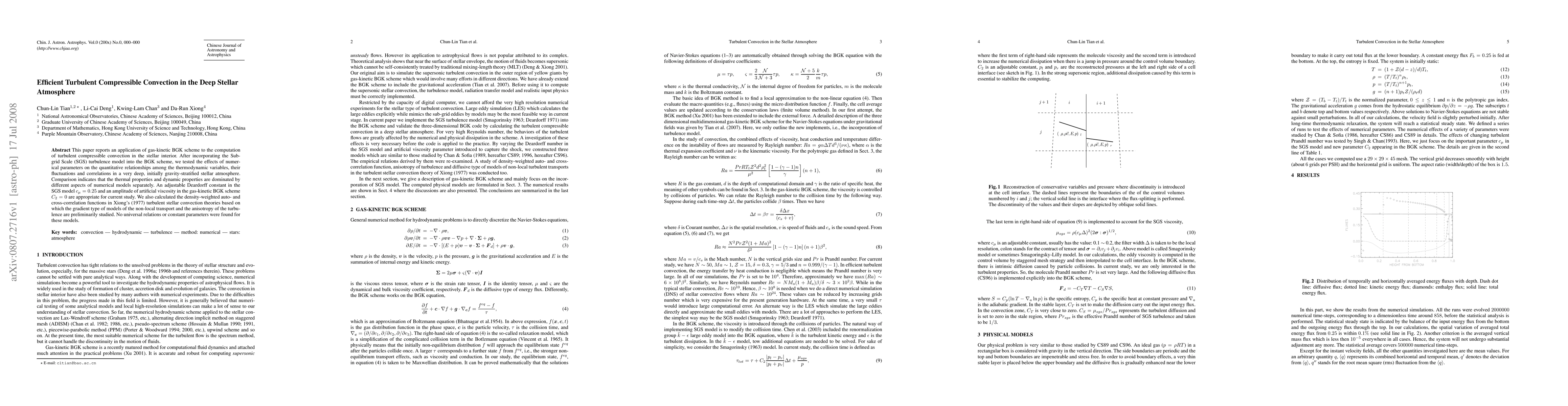 This paper applies the gas-kinetic BGK scheme with a Sub-grid Scale turbulence model to simulate turbulent compressible convection in deep stellar atmospheres, finding that thermal and dynamic properties are influenced by different numerical aspects. Optimal parameters identified are $c_\mu=0.25$ and $C_2=0$.