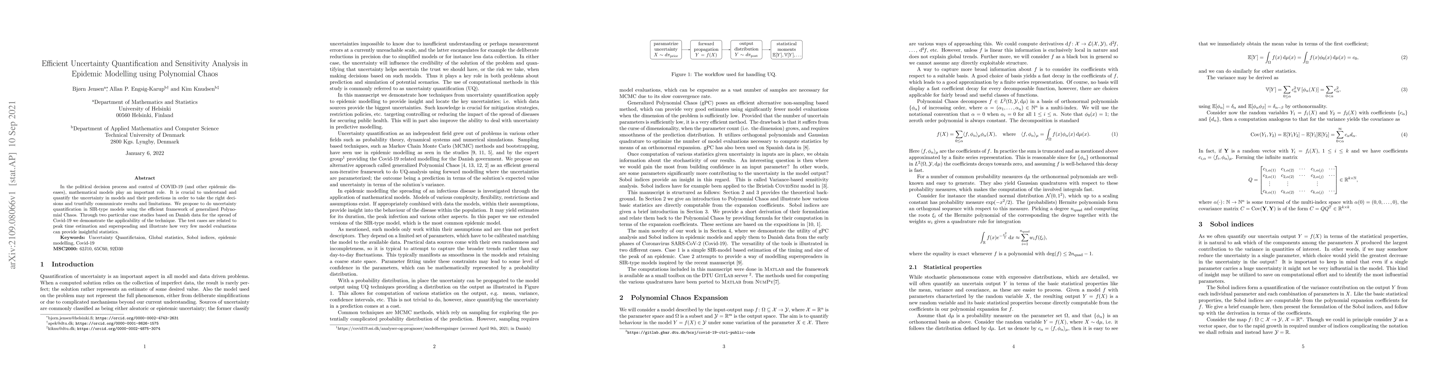 This paper proposes using generalized Polynomial Chaos for efficient uncertainty quantification and sensitivity analysis in SIR-type epidemic models, demonstrating its application through two case studies on Danish COVID-19 data to estimate peak time and superspreading, showing minimal model evaluations yield insightful statistics.