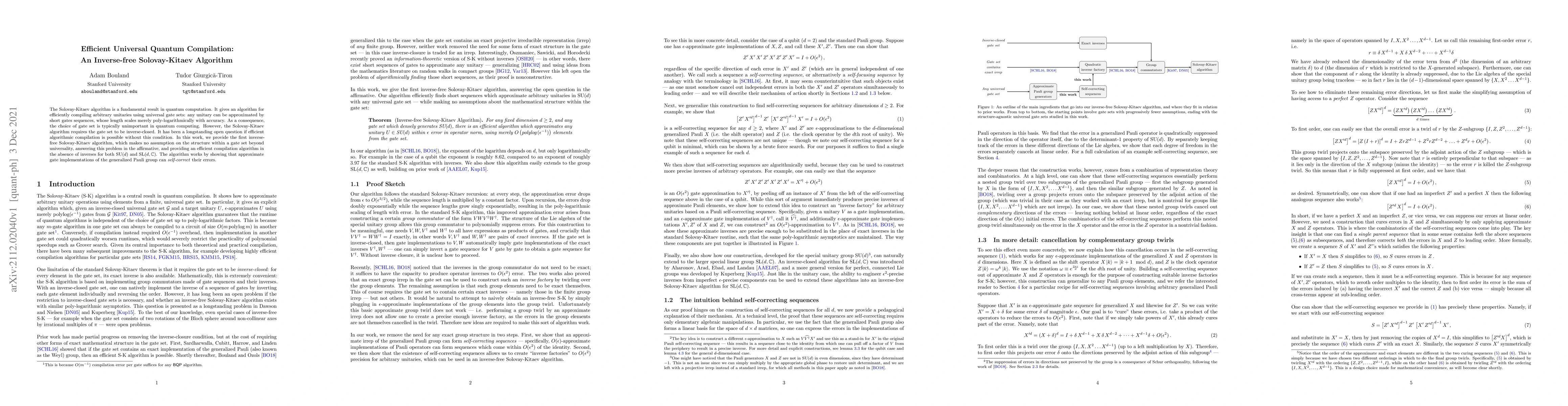 The Solovay-Kitaev algorithm is a fundamental result in quantum computation. It gives an algorithm for efficiently compiling arbitrary unitaries using universal gate sets: any unitary can be approximated by short gates sequences, whose length scales merely poly-logarithmically with accuracy. As a consequence, the choice of gate set is typically unimportant in quantum computing. However, the Solovay-Kitaev algorithm requires the gate set to be inverse-closed. It has been a longstanding open question if efficient algorithmic compilation is possible without this condition. In this work, we provide the first inverse-free Solovay-Kitaev algorithm, which makes no assumption on the structure within a gate set beyond universality, answering this problem in the affirmative, and providing an efficient compilation algorithm in the absence of inverses for both $\text{SU}(d)$ and $\text{SL}(d, \mathbb{C})$. The algorithm works by showing that approximate gate implementations of the generalized Pauli group can self-correct their errors.