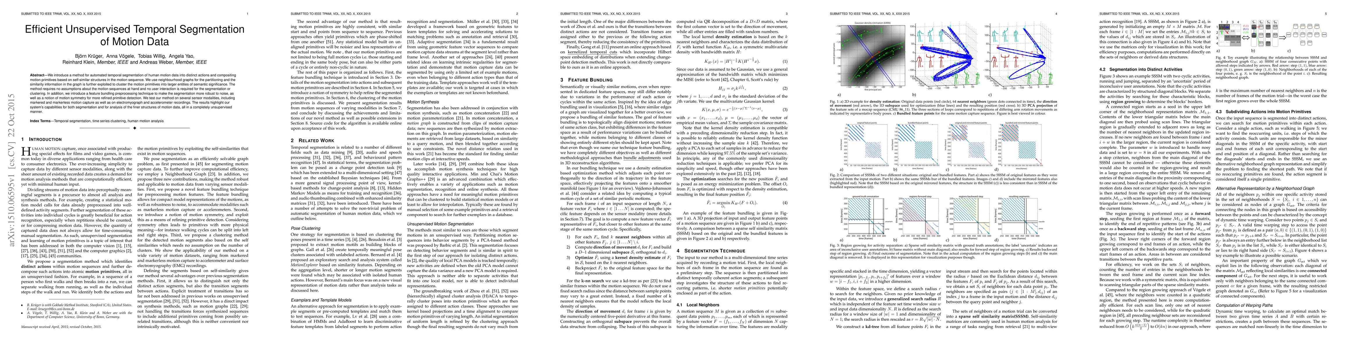 This paper presents an unsupervised method for temporal segmentation of human motion data into distinct actions using self-similar structures and neighbourhood graphs, with no need for assumptions or user interaction. The method also includes feature bundling and motion symmetry for robustness and refined primitive detection, tested across various sensor modalities.