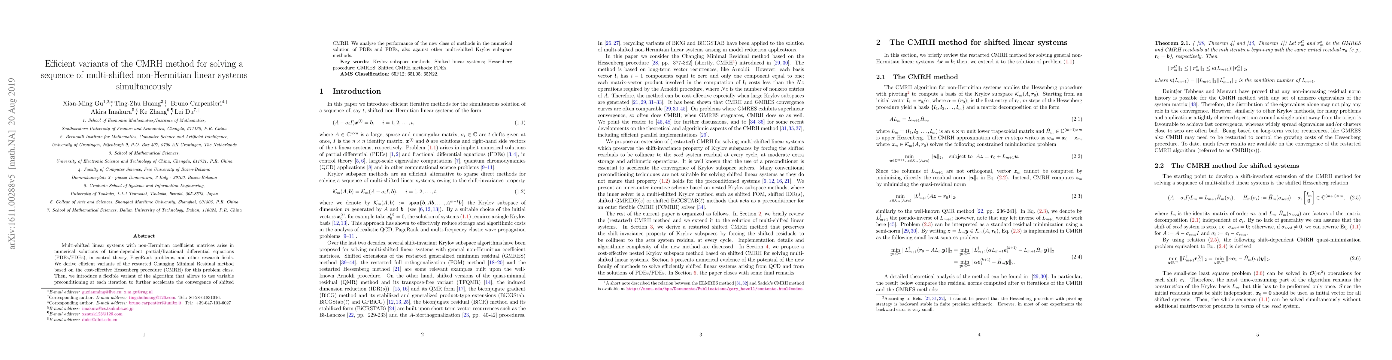 This paper proposes efficient variants of the restarted Changing Minimal Residual method (CMRH) for solving multi-shifted non-Hermitian linear systems, which commonly arise in numerical solutions of time-dependent PDEs and FDEs. The new methods incorporate variable preconditioning and are analyzed for performance against other multi-shifted Krylov subspace methods.
