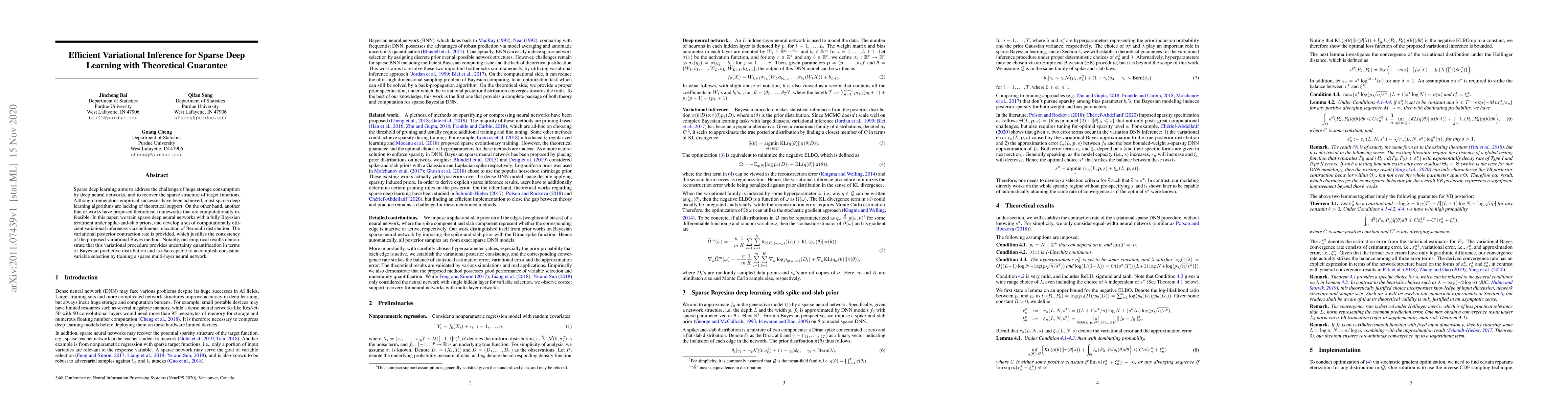 This paper proposes a computationally efficient variational inference method for sparse deep learning, utilizing spike-and-slab priors and continuous relaxation of Bernoulli distribution. It provides theoretical guarantees for posterior contraction and demonstrates consistent variable selection and uncertainty quantification in sparse neural networks.