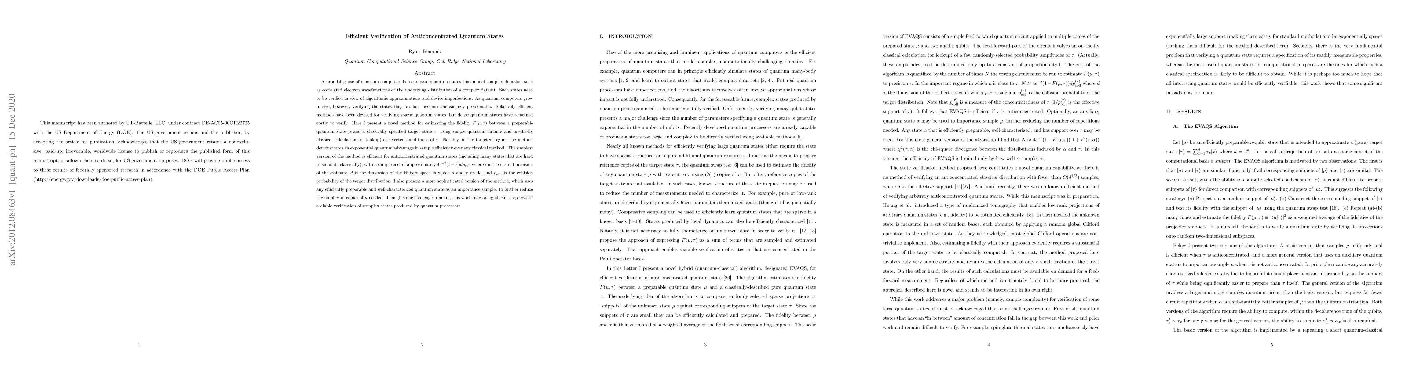 This research introduces an efficient method for verifying quantum states using simple quantum circuits and classical calculations. The method offers an exponential advantage in sample efficiency for anticoncentrated quantum states, significantly contributing to scalable verification of complex states produced by quantum processors.