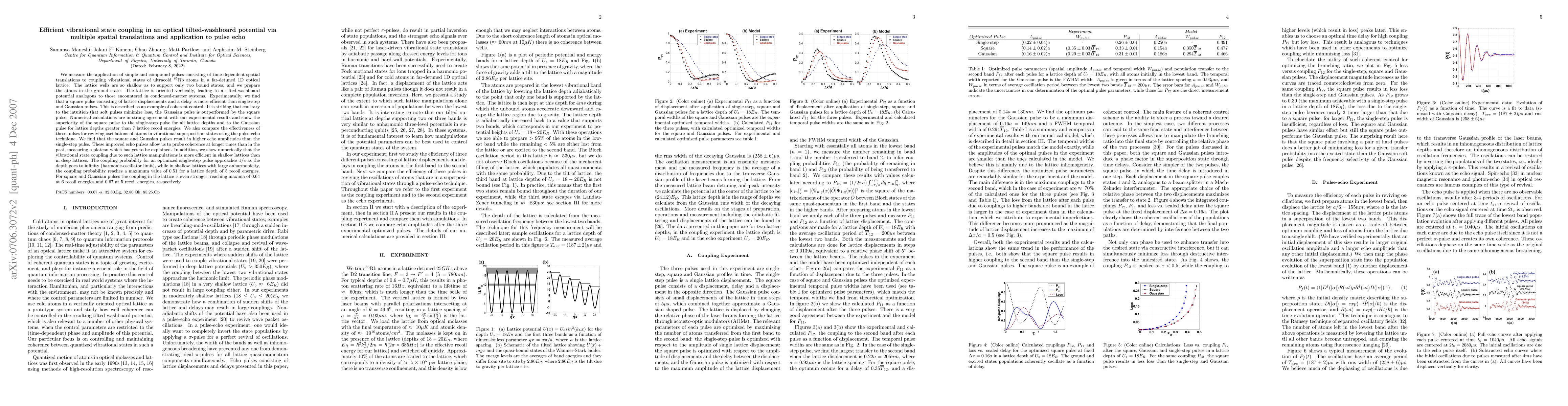 We measure the application of simple and compound pulses consisting of time-dependent spatial translations to coupling vibrational states of ultracold 85Rb atoms in a far-detuned 1D optical lattice. The lattice wells are so shallow as to support only two bound states, and we prepare the atoms in the ground state. The lattice is oriented vertically, leading to a tilted-washboard potential analogous to those encountered in condensed-matter systems. Experimentally, we find that a square pulse consisting of lattice displacements and a delay is more efficient than single-step and Gaussian pulses. This is described as an example of coherent control. It is striking that contrary to the intuition that soft pulses minimize loss, the Gaussian pulse is outperformed by the square pulse. Numerical calculations are in strong agreement with our experimental results and show the superiority of the square pulse to the single-step pulse for all lattice depths and to the Gaussian pulse for lattice depths greater than 7 lattice recoil energies. We also compare the effectiveness of these pulses for reviving oscillations of atoms in vibrational superposition states using the pulse-echo technique. We find that the square and Gaussian pulses result in higher echo amplitudes than the single-step pulse. These improved echo pulses allow us to probe coherence at longer times than in the past, measuring a plateau which has yet to be explained. In addition, we show numerically that the vibrational state coupling due to such lattice manipulations is more efficient in shallow lattices than in deep lattices.