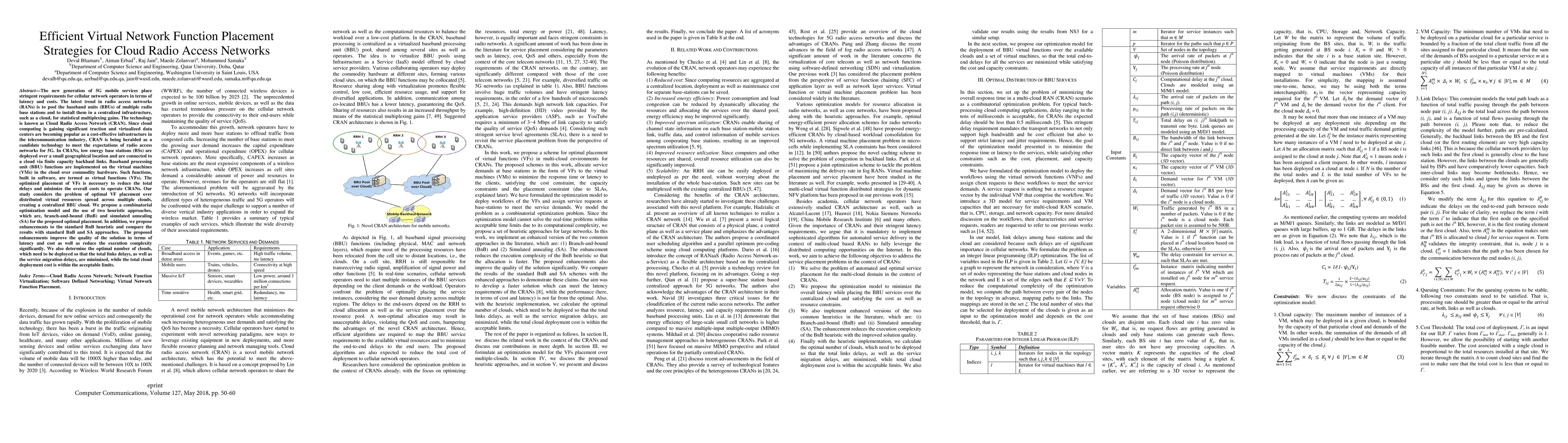 This paper proposes efficient strategies for placing virtual network functions (VFs) in Cloud Radio Access Networks (CRAN) to minimize latency and operational costs. The study introduces a combinatorial optimization model and heuristic approaches, including branch-and-bound and simulated annealing, to optimize VF placement across multiple cloud resources, with enhancements to the branch-and-bound method yielding better performance and reduced complexity.